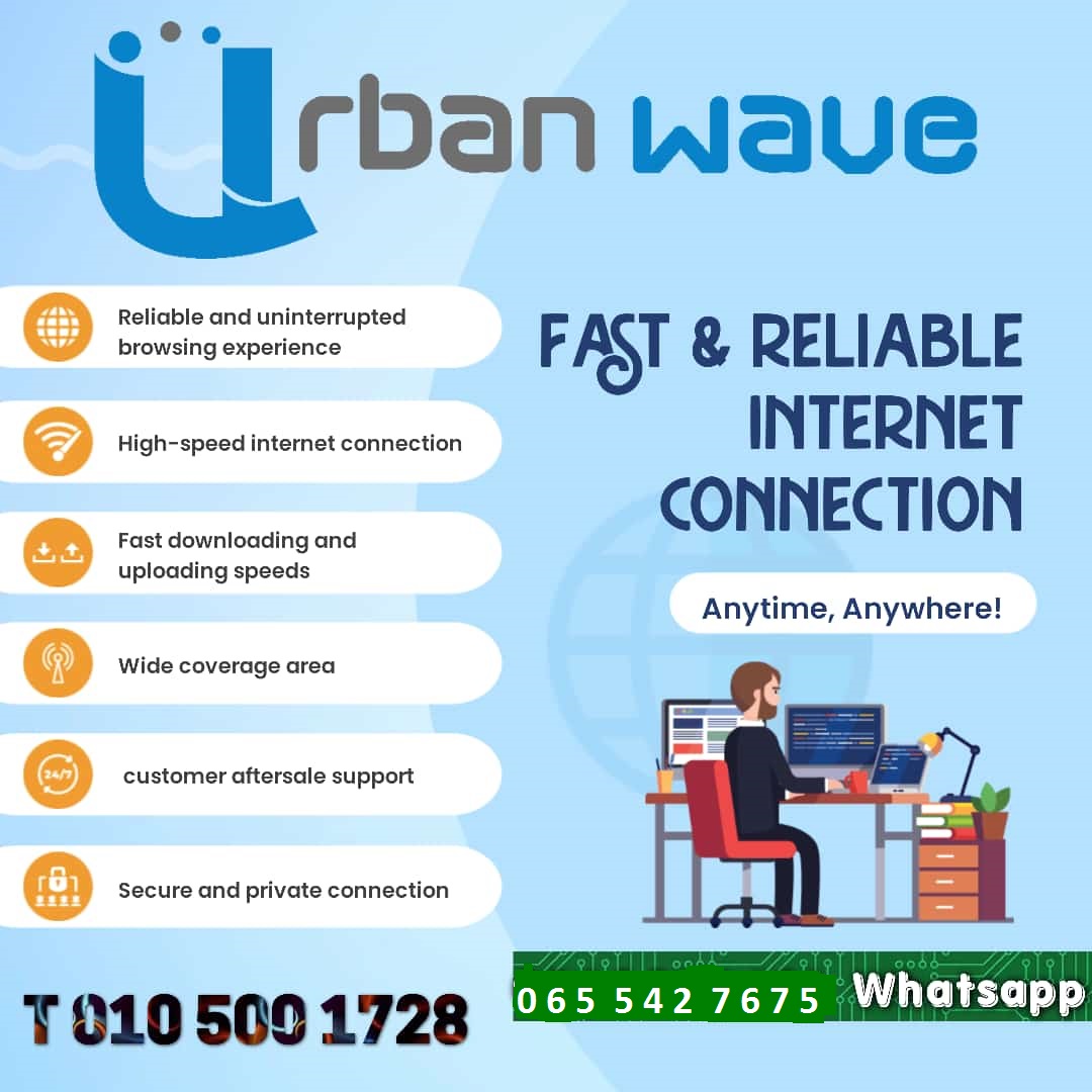 Urbanwave is not only a wireless internet company, we are a registered reseller for all major fibre providers and cover JHB, Durban & Cape Town. We provide web and email hosting, VPN solutions, Hotspots for businesses, VOIP telephone systems, CCTV and we currently have limited stock of WiFi UPS's.