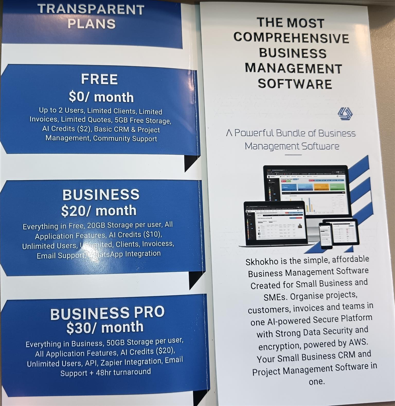 * Skhokho AI is an AI-embedded CRM and business management software created for small to medium businesses and SME's, organise projects, customers, invoices and teams in one AI-powered secure platform with a strong DATA Security and encryption.