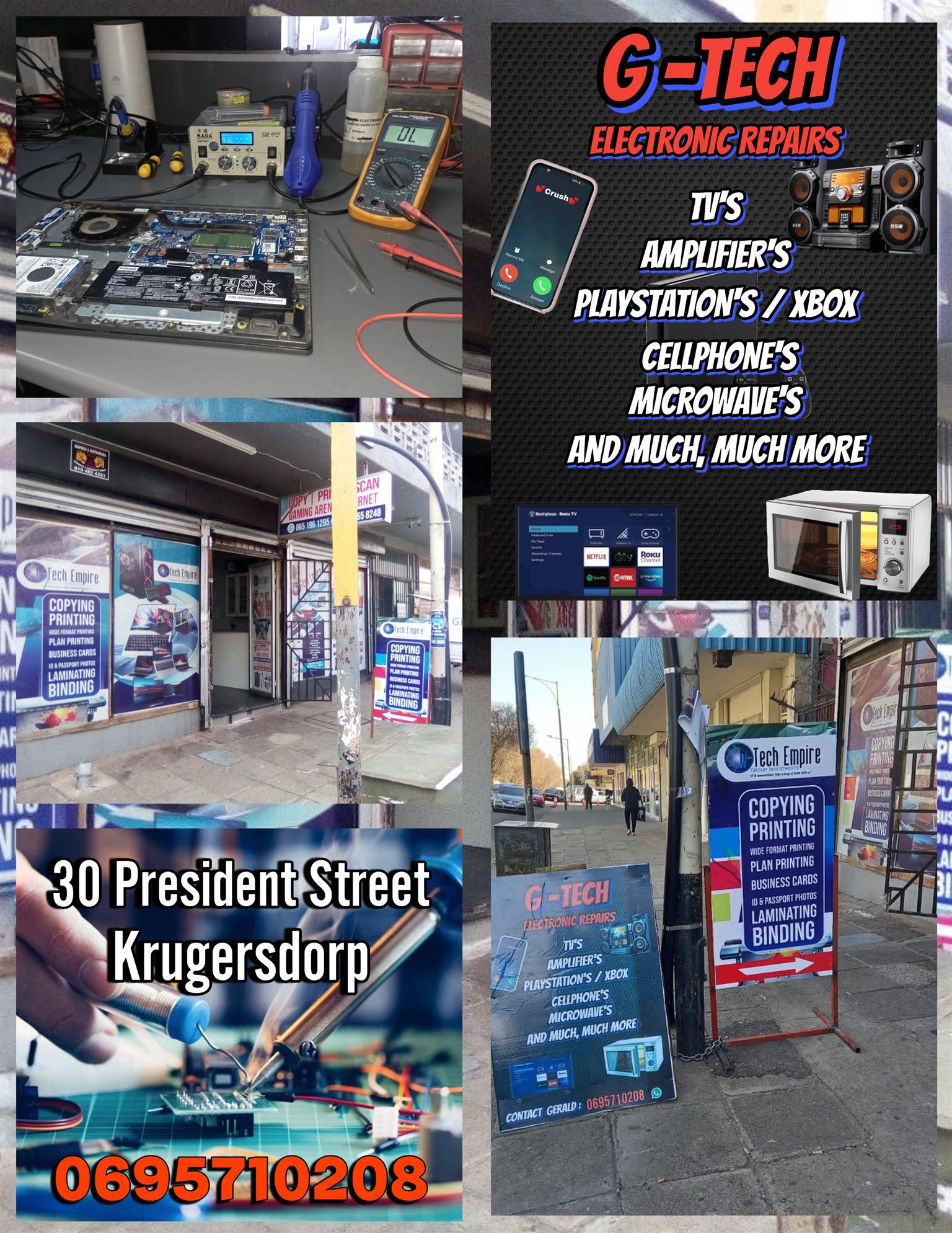 G Tech Electronic Repair Shop30 President Street KrugersdorpFast, and Friendly ServiceSame day repairs welcome