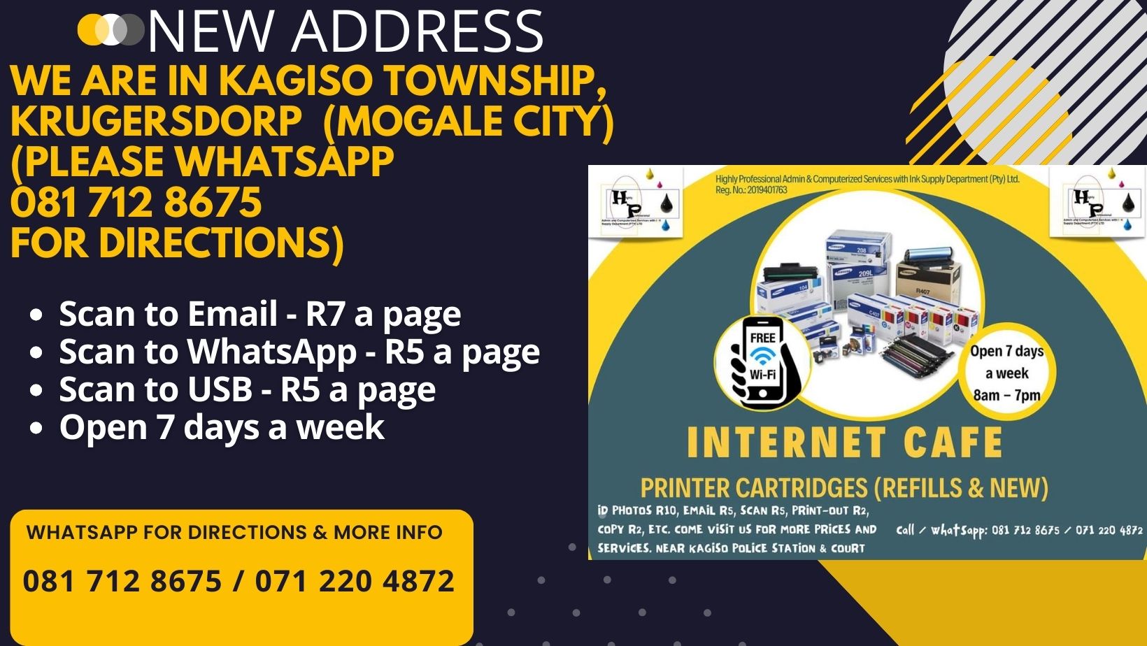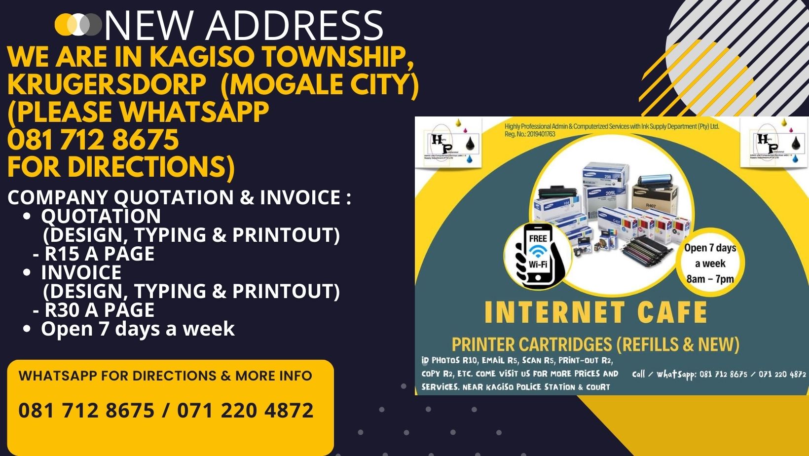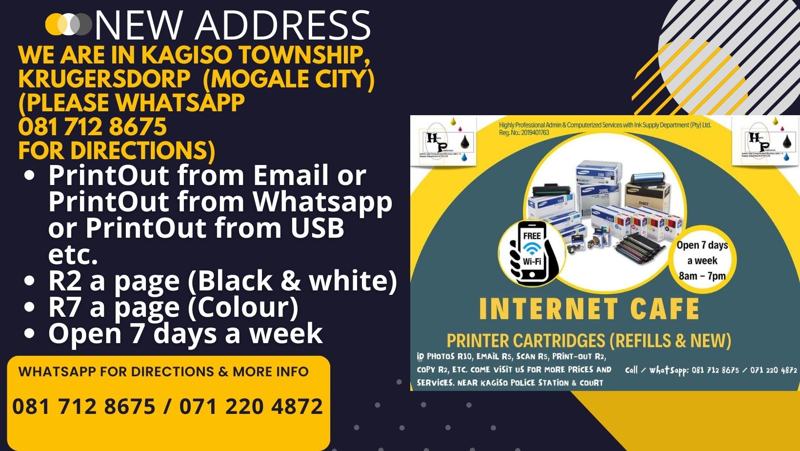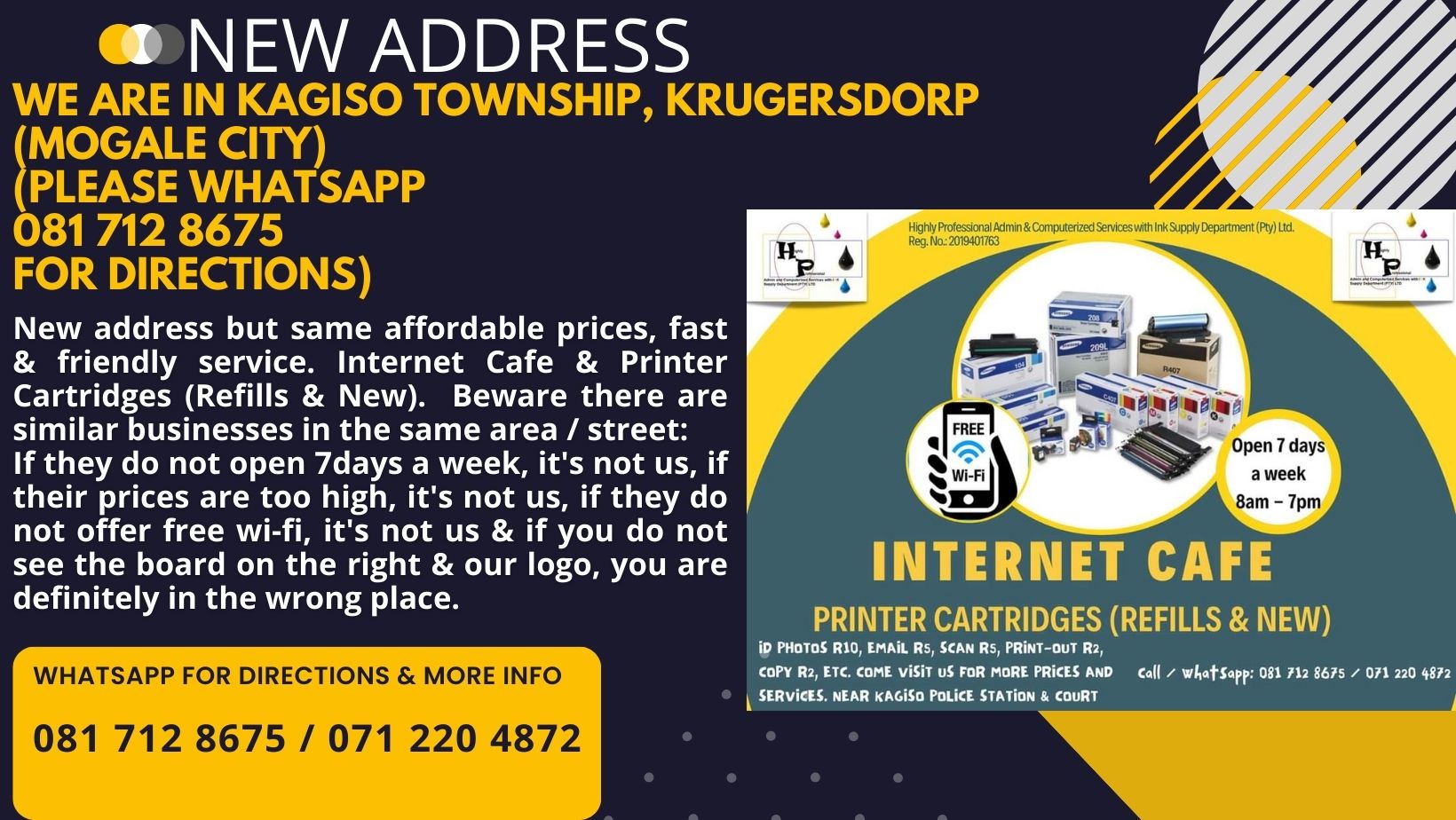 We are an Internet Cafe & Printer Cartridge Shop in Kagiso township, Krugersdorp (Mogale City)