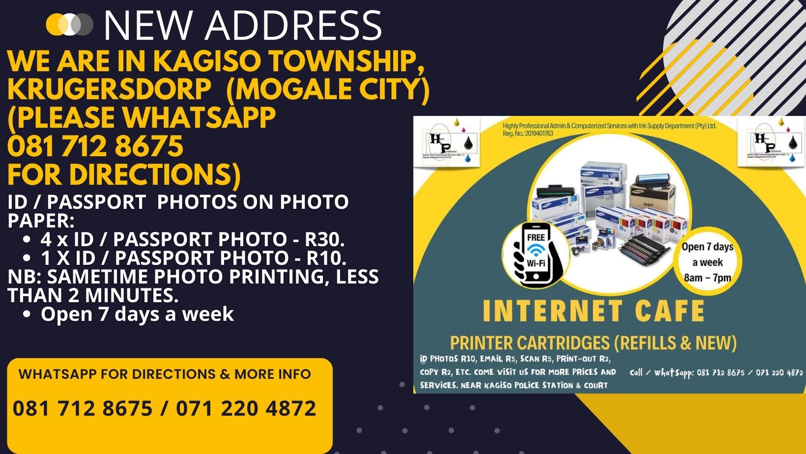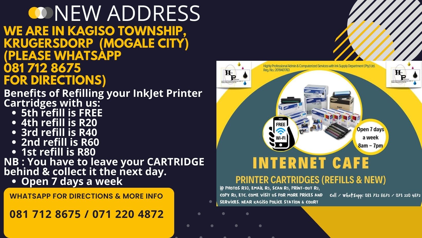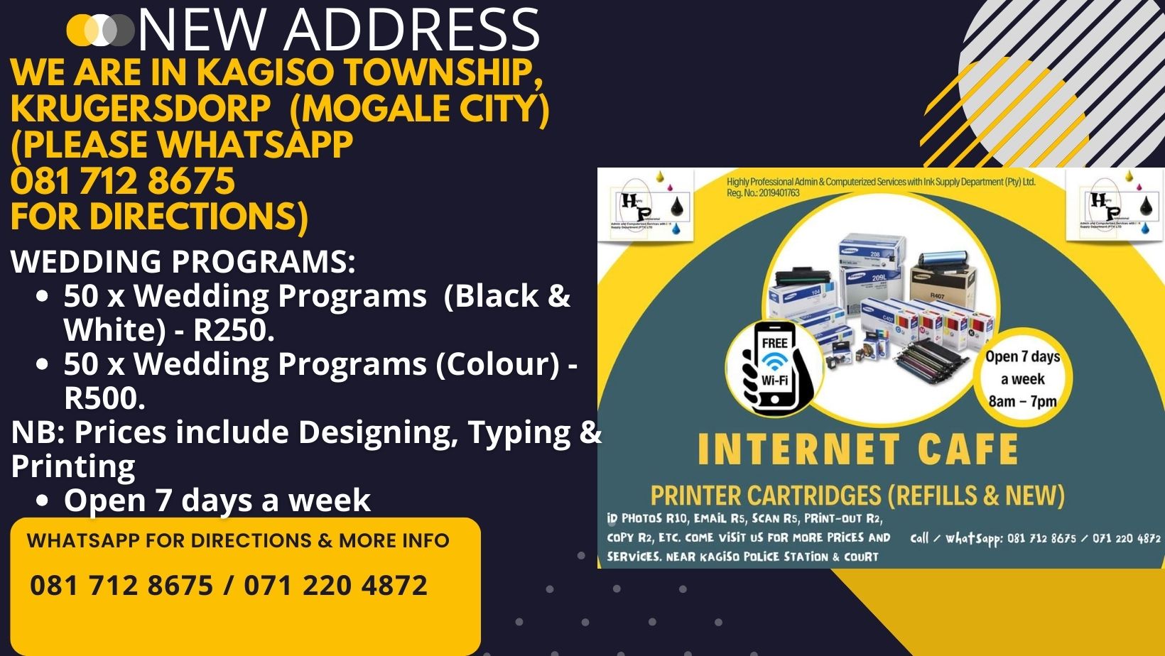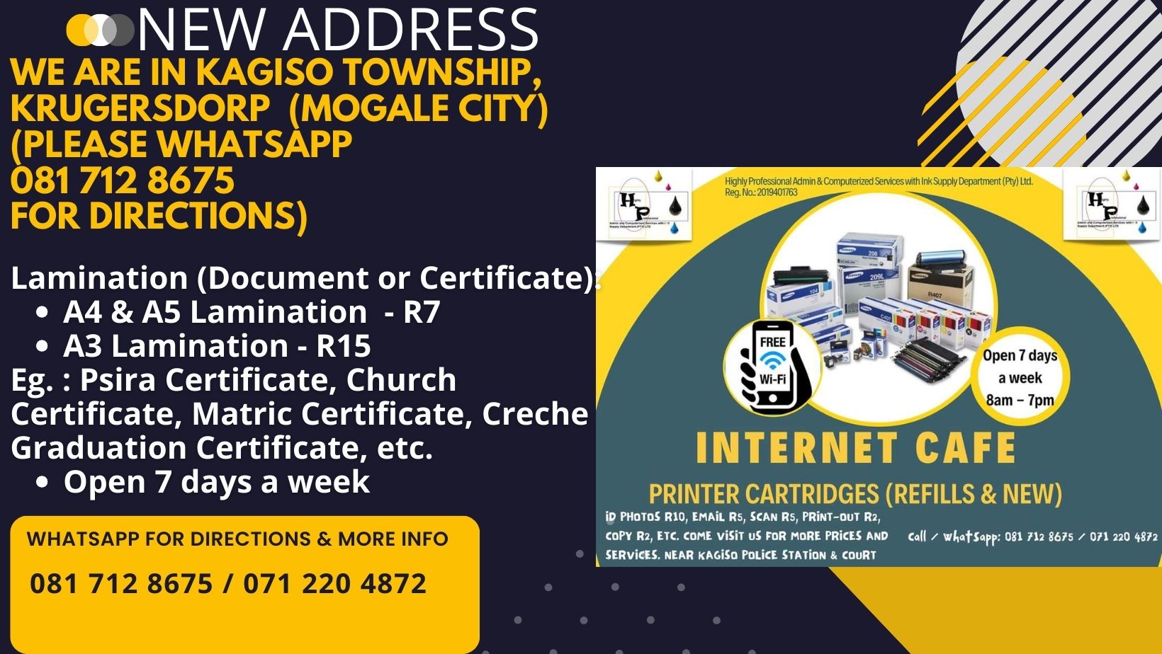 We are an Internet Cafe & Printer Cartridge Shop in Kagiso township, Krugersdorp (Mogale City)