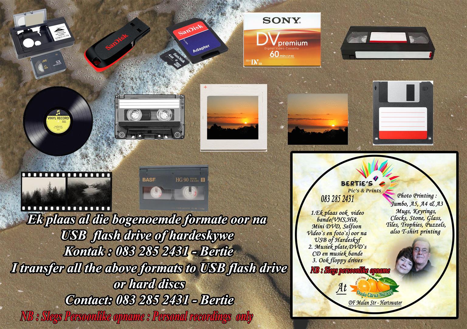 Ek plaas al die bogenoemde formate oor na USB flash drive of hardeskywe - I transfer all the above formats to USB flash drive or hard discs