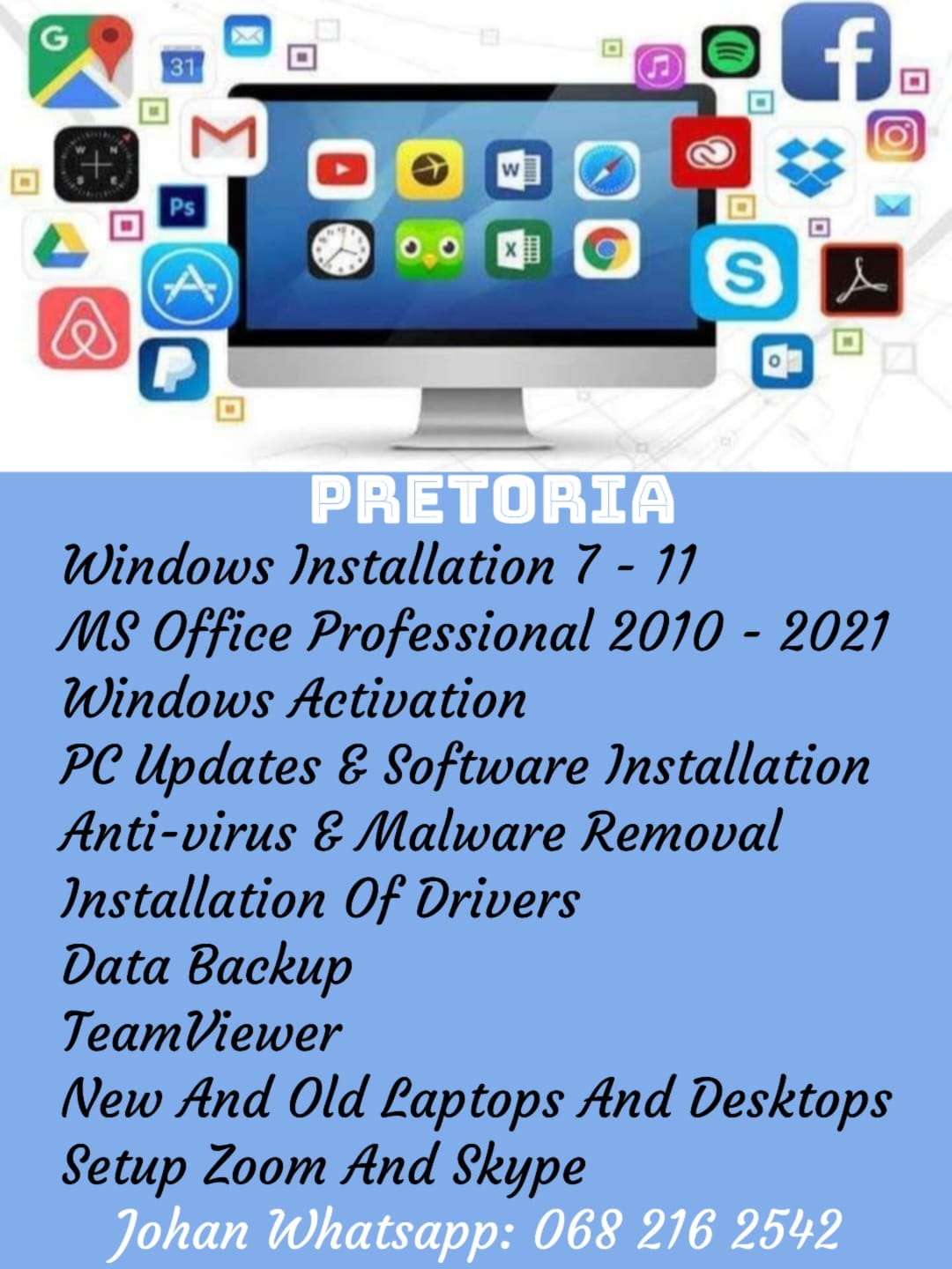 Laptop, Desktop, Server and printer support on Windows 7/8/10.