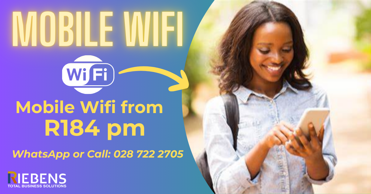 Mobile WiFi from R184 per monthUse this online form to apply http://riebensconnect.co.za/lteWhatsApp or Call: 028 722 2705view more