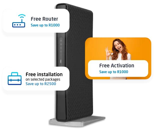 Prices starts from R289pm. OCTOTEL 25/25Mbps for only R449pm 55/25Mbps for only R595pm FROGFOOT AIR 10/1 Air Mbps for only R289pm 50/10 Air Mbps for only R399pm FIBRE BY VUMA 25/25Mbps for only R449pm 50/25Mbps for only R629pm OPENSERVE 50/25Mbps for only R649pm 50/50Mbps for only R709pm TT CONNECT 30/30Mbps for only R755pm 50/50Mbps for only R960pm METROFIBRE 20/20Mbps for only R485pm 75/75Mbps for only R799pm BALWIN FIBRE 4/1Mbps for only R490pm 40/40Mbps for only R699pm WAN (WATERFALL ACCESS NETWORKS) 40/40Mbps for only R699pm 70/70Mbps for only R899pm RISE TELECOMS 50/25Mbps for only R857pm 100/50Mbps for only R958pm NETSTREAM 4/4Mbps for only R589pm 10/10Mbps for only R759pm EVOTEL 10/2Mbps for only R599pm 30/30Mbps for only R789pm LINK AFRICA 25/25Mbps for only R599pm 50/50Mbps for only R749pm VODACOM 20/10Mbps for only R549pm 20/20Mbps for only R649pm OPENFIBRE 20/5Mbps for only R750pm 50/50Mbps for only R850pm LINK LAYER 30/30Mbps for only R559pm 50/50Mbps for only R759pm ZOOM FIBRE 15/15Mbps for only R295pm 30/30Mbps for only R515pm Free Installation on selected packages worth R2500* Free connection worth R1000* Free-to-use Wi-Fi Router worth R1000* Free Voice Minutes (60 minutes) Speed & Quality Internet Fast and Reliable Connectivity Work, study, game, shop, browse or socialise – no matter the platform or activity, with Fibre, there are no interruptions. Speeds range from 4Mbps to 1Gbps Extensive coverage across all 9 provinces in SA Month to Month Contracts Unshaped and Unthrottled Upgrade and downgrade your Fibre line with ease. Affordable Internet Cost-Effective Fibre Packages Affordable fibre optic connectivity for every home. Price starts at R289 pm Free installation and activation on selected packages Free-to-use Router Uncapped with no FUP Save up to R4500 Download the Vobi App and get 60 free Voice minutes per month Support available 24/7 Our technical experts are always on standby to assist with your every need. Level 1,2,3 engineers available. 24/7/365 days to assist. Remote and on-site troubleshooting available. Telephonic and email platforms available. Online Customer Portal to manage all your connectivity requirements.