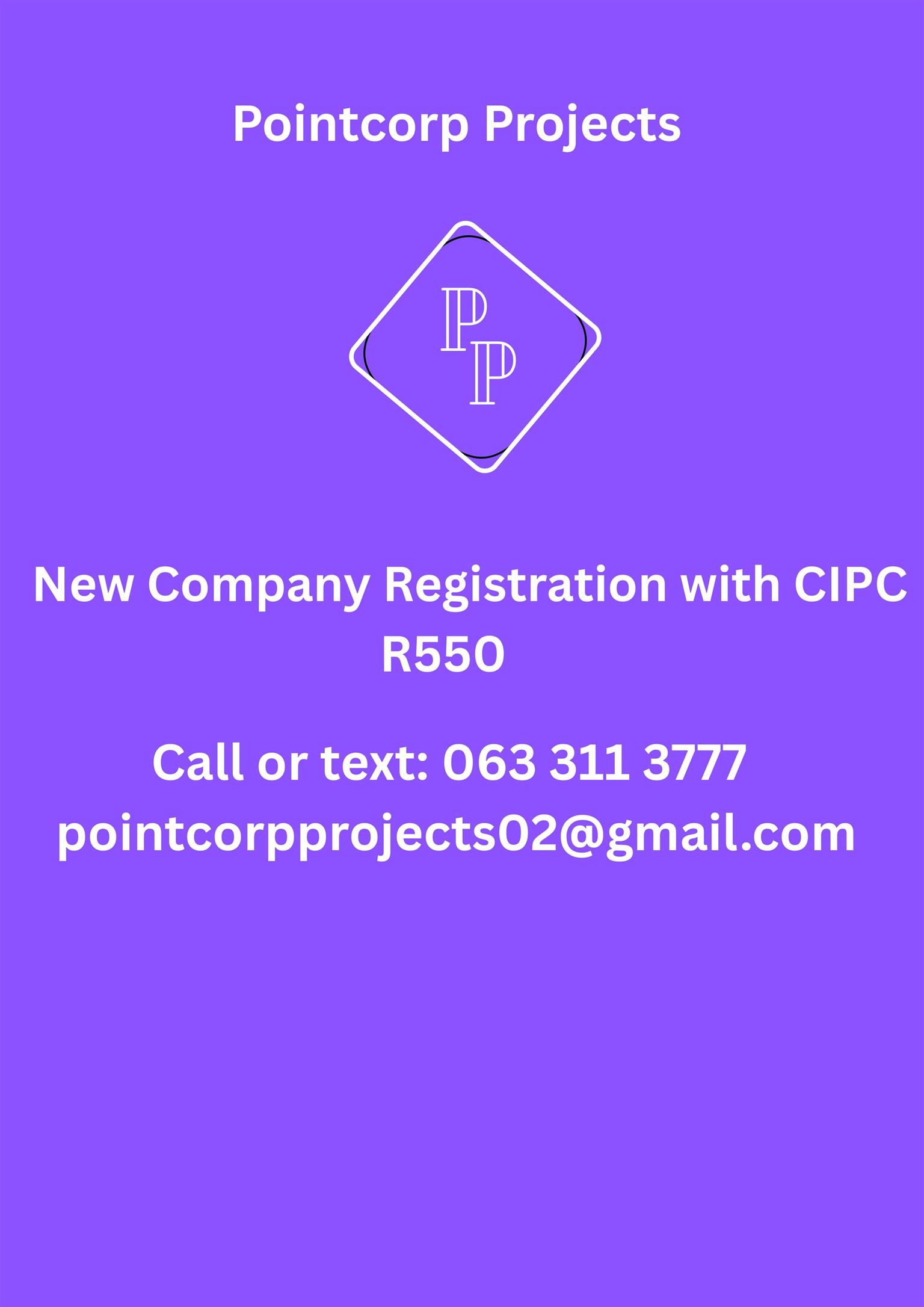 We help you with services of new company registration at only R550. Other services that are provided include: