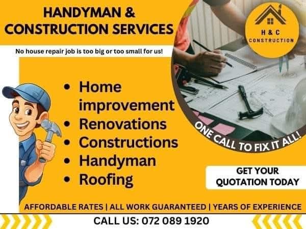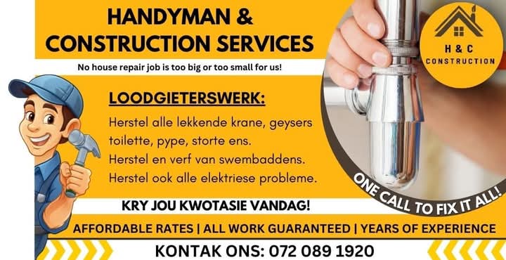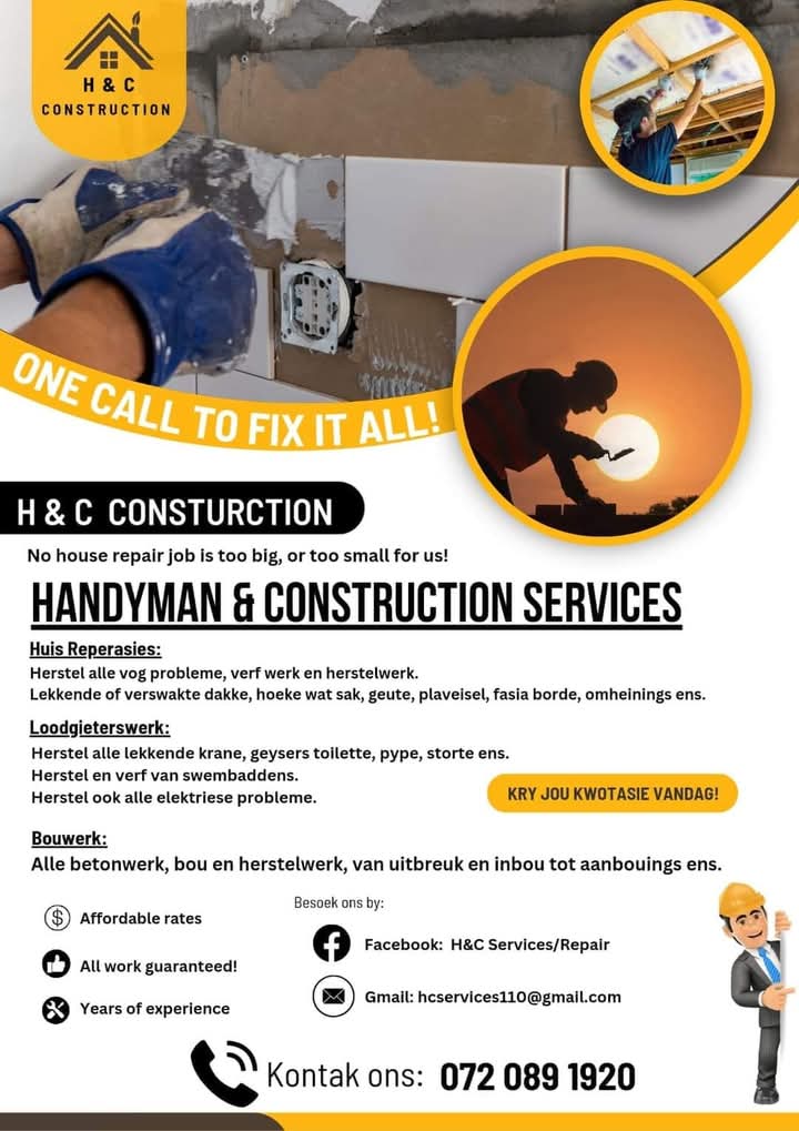 We at H and C Services in Bloemfontein are here to deliver fast and friendly services to your day to day maintenance and construction needs: