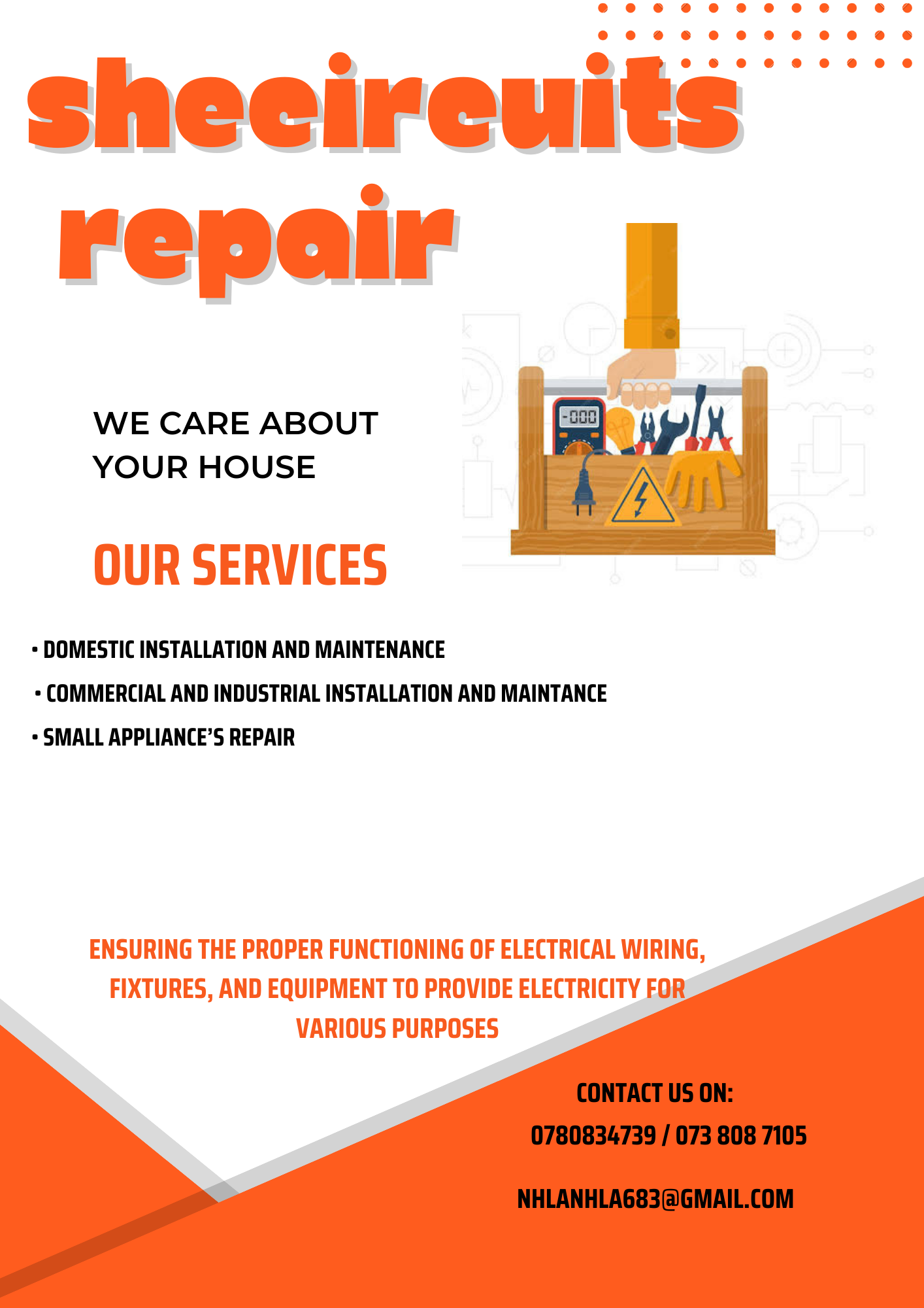 Electrical installations of domestic and commercial equipment. We offer electrical repairs and maintenance of lighting systems, protection devices and Distribution boards. We do domestic wiring whether you are renovating or refurbishment or even building the house or business of your dreams, we will wire electricity for you at affordable prices.