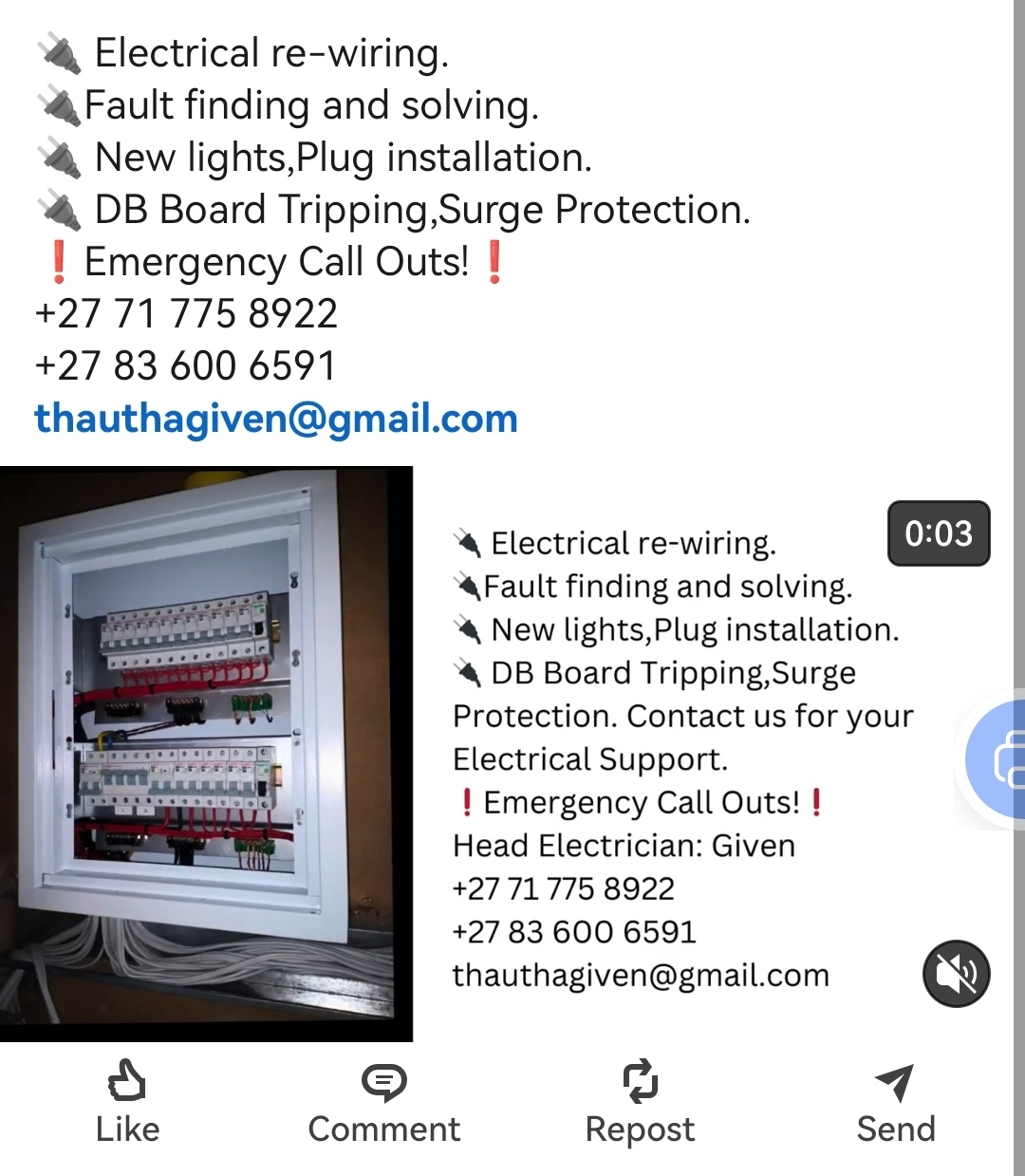❗Emergency Call Outs!❗ Head Electrician: Given