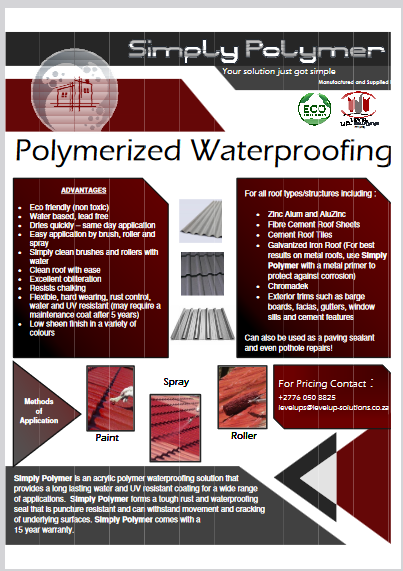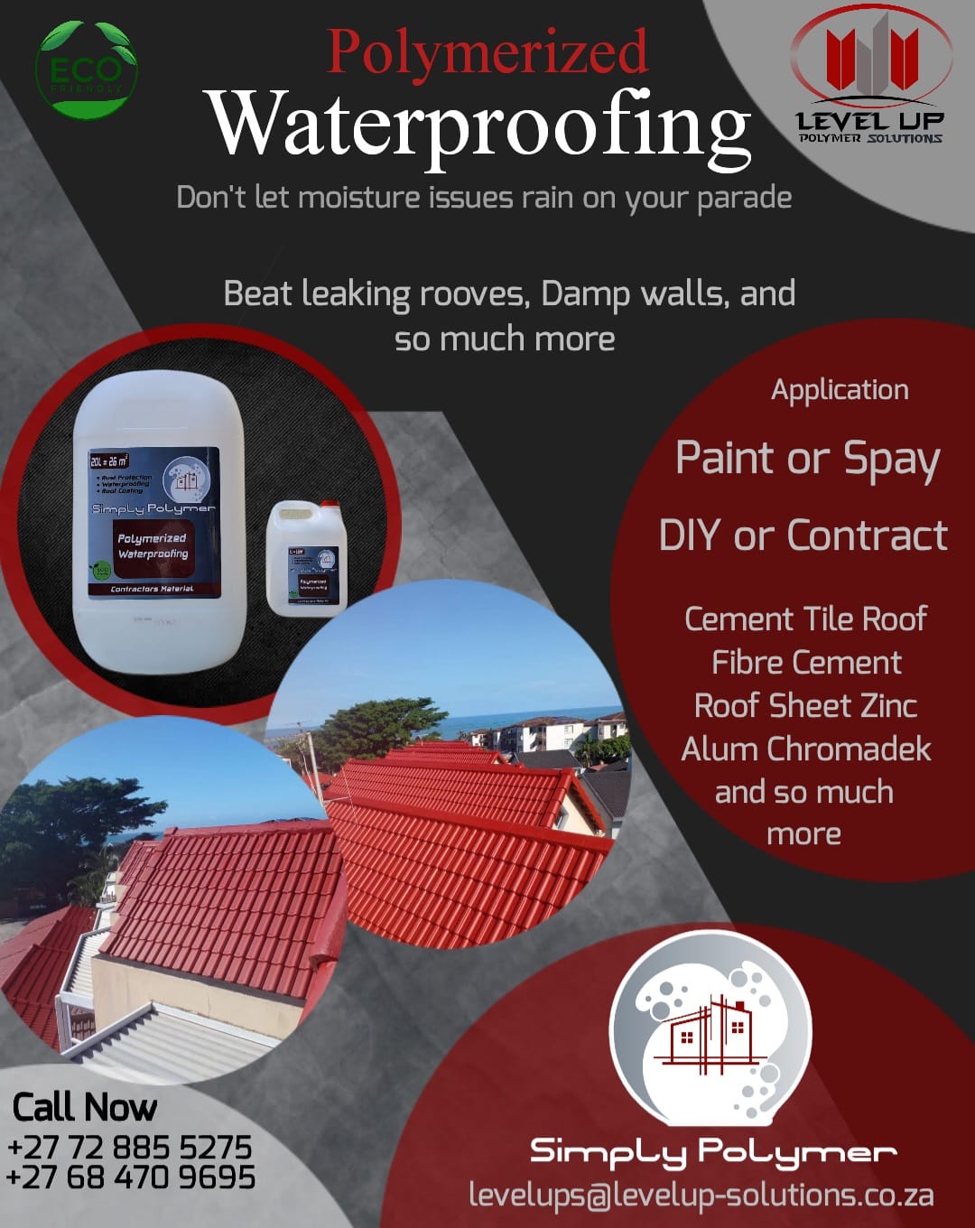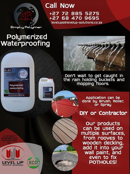 At Levelup-Polymer Solutions our superior product does it all get your 5 L for as little as 385 wholesale or call Dean on 0684709695view more for quotes on waterproofing projects. put an end to rising damp. looking for five bakkie owners to transport and manage water proofing teams ! get your obligation free quote now and avoid anymore cold wet nights.