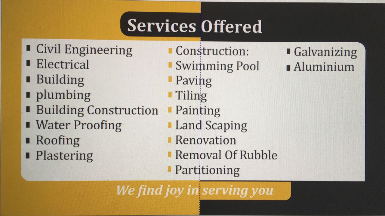 We are seasoned engineering and construction company with vast experience in building new houses and renovations we are registered with the professional body NHBRC.