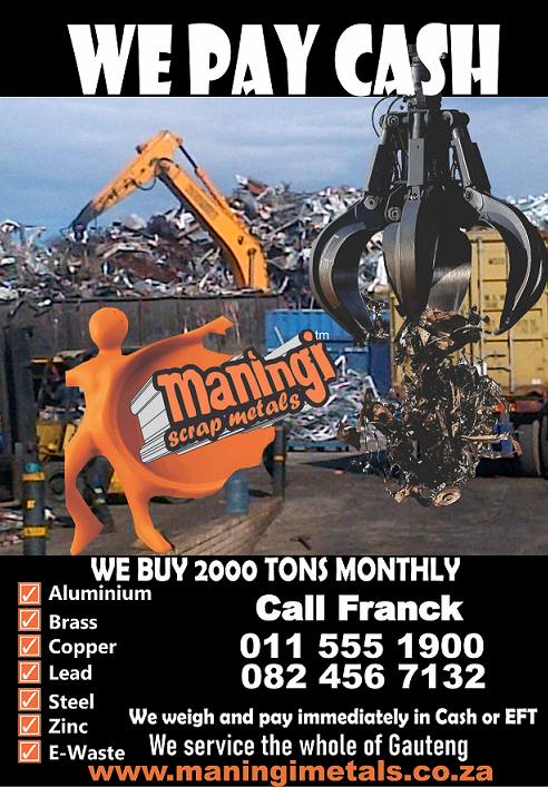 We place skips onsite, you fill them, we collect them! We weigh and pay in cash or EFT immediately. We do onsite cutting, and provide salvage services and metal testing. We service the whole of Gauteng with branches in Marboro, Jhb CBD and Chamdor. We recycle all ferrous and non-ferrous metals, We recycle E-waste (any electrical appliance with an electrical cord. We buy dead batteries, air-conditioners and any electronic device. Best prices and service in Gauteng!