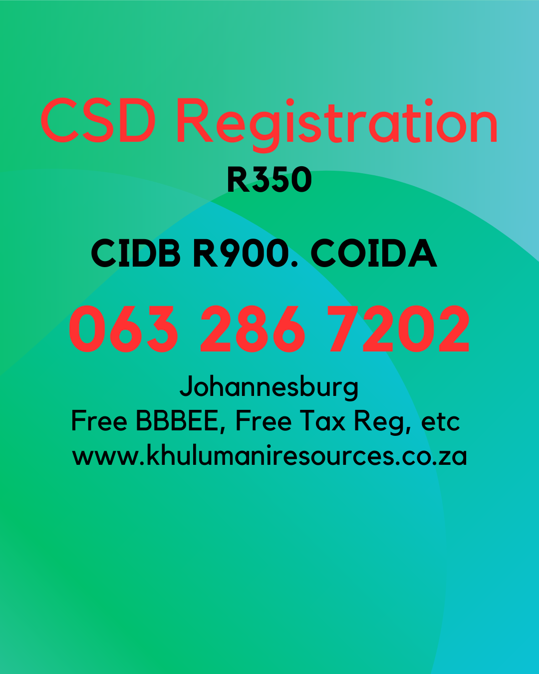 CSD Registration R350 same day. Cell: 063 286 7202view more