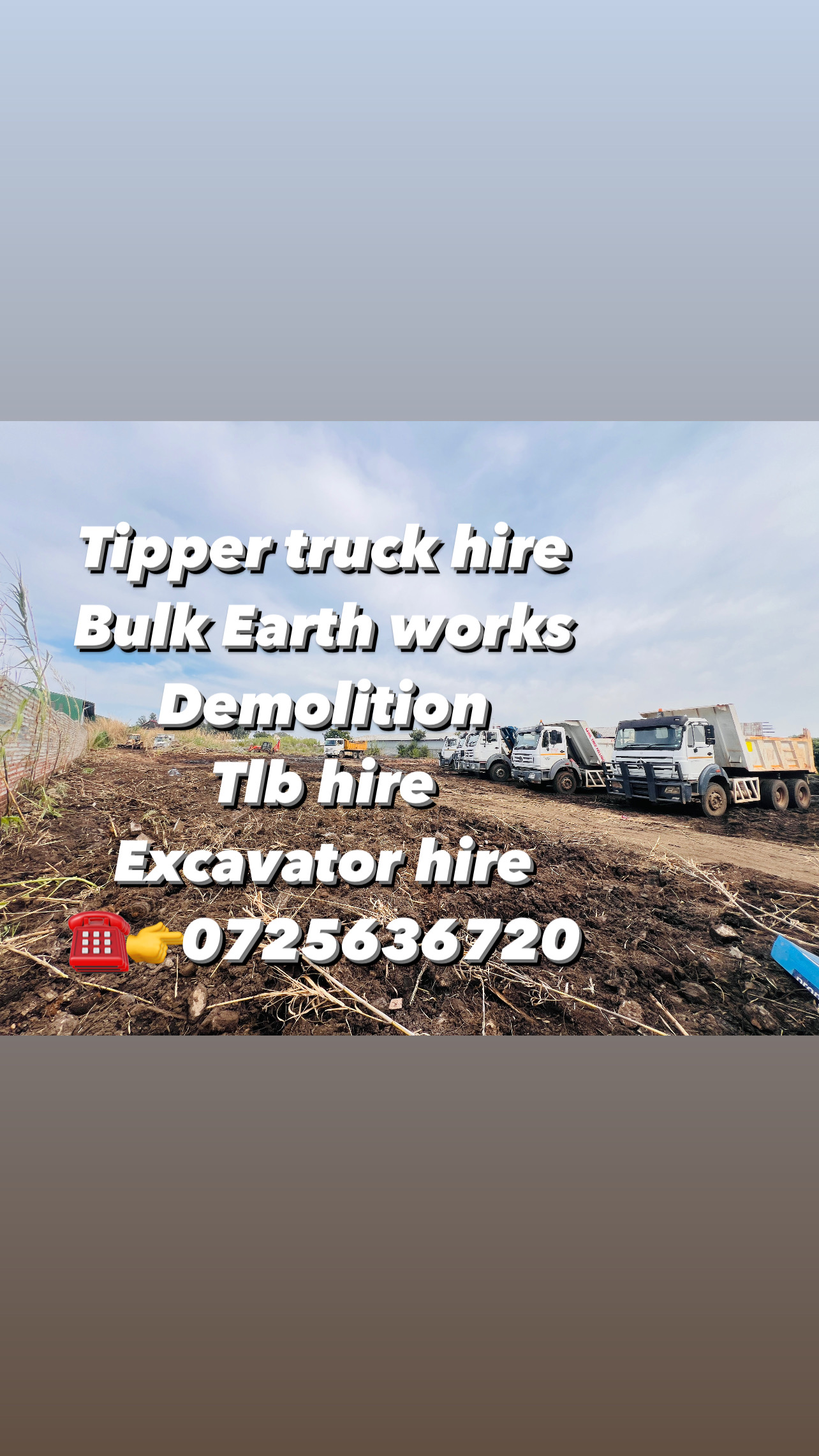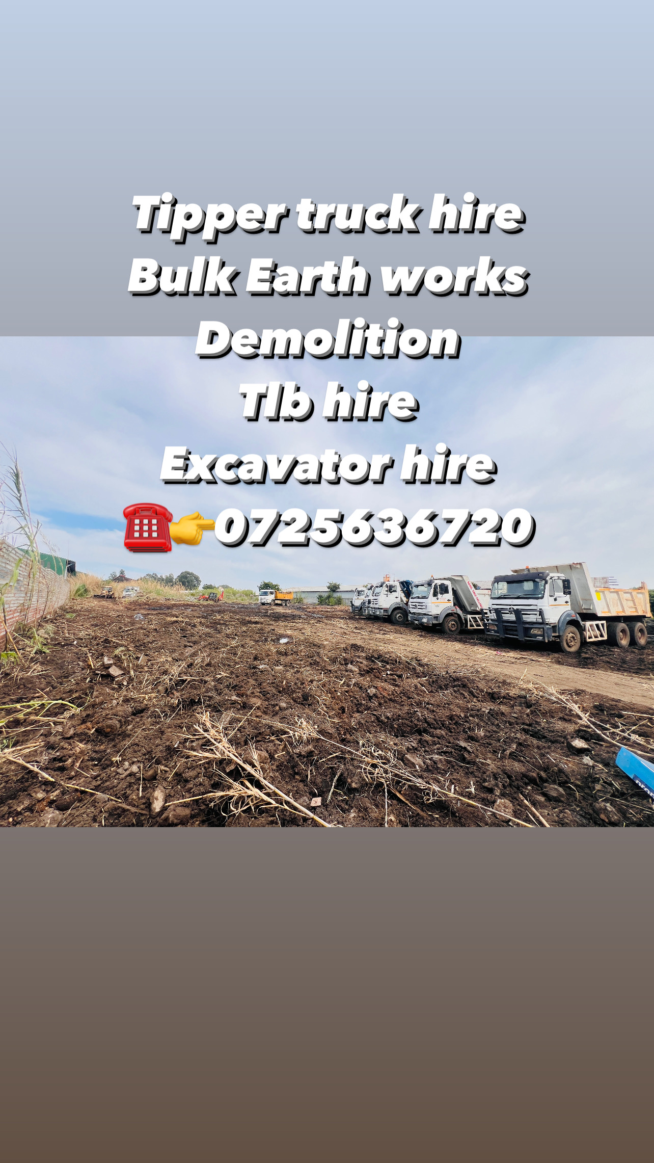 10 cube tipper truck hire In Johannesburg Tlb hire Tipper truck hireDemolition of housesBulk Earth works
