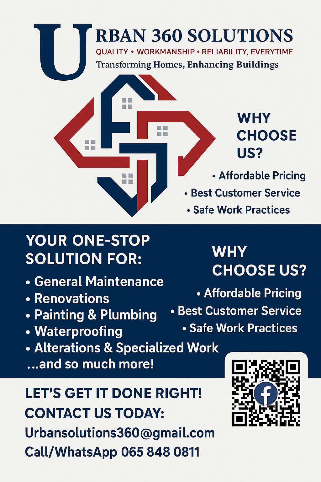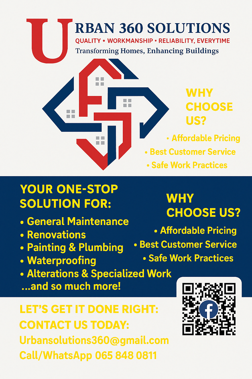 For all you building and Renovation needs and service. Urban 360 is the way to go. With great customer service and the best prices. We do it all, from building, electrical, waterproofing, painting and sorting much more. Please contact us and we will definately assist you with A free quote.