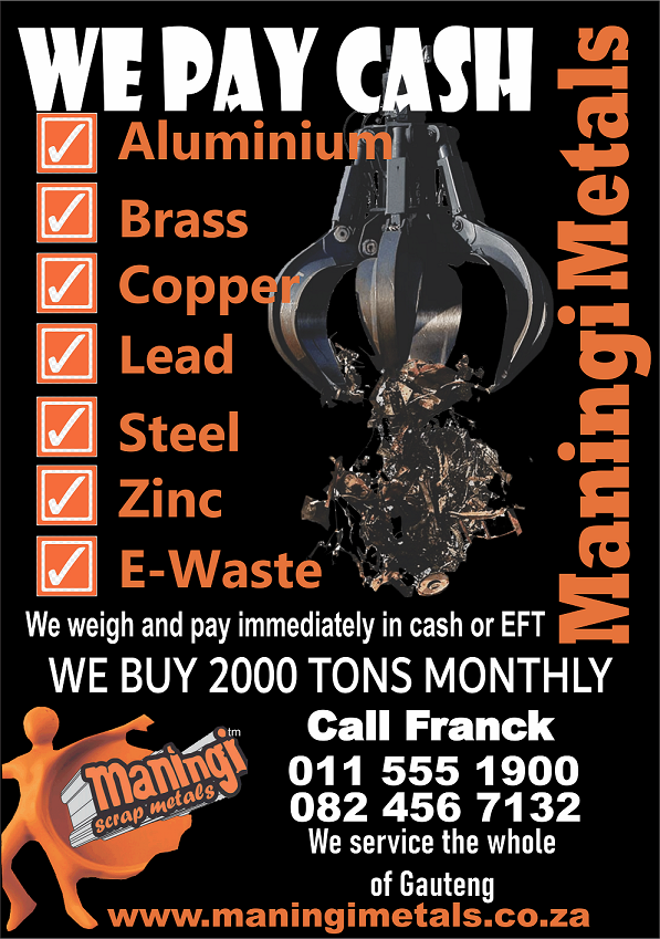 We place skips onsite, you fill them, we collect them! We weigh and pay in cash or EFT immediately. We do onsite cutting, and provide salvage services and metal testing. We service the whole of Gauteng with branches in Marboro, Jhb CBD and Chamdor. We recycle all ferrous and non-ferrous metals, We recycle E-waste (any electrical appliance with an electrical cord. We buy dead batteries, air-conditioners and any electronic device. Best prices and service in Gauteng!