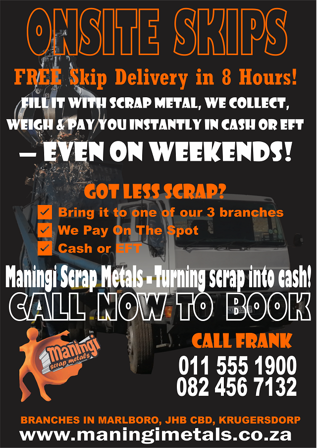 Book your FREE skip today and turn your clean-up into cash with Maningi Metals.