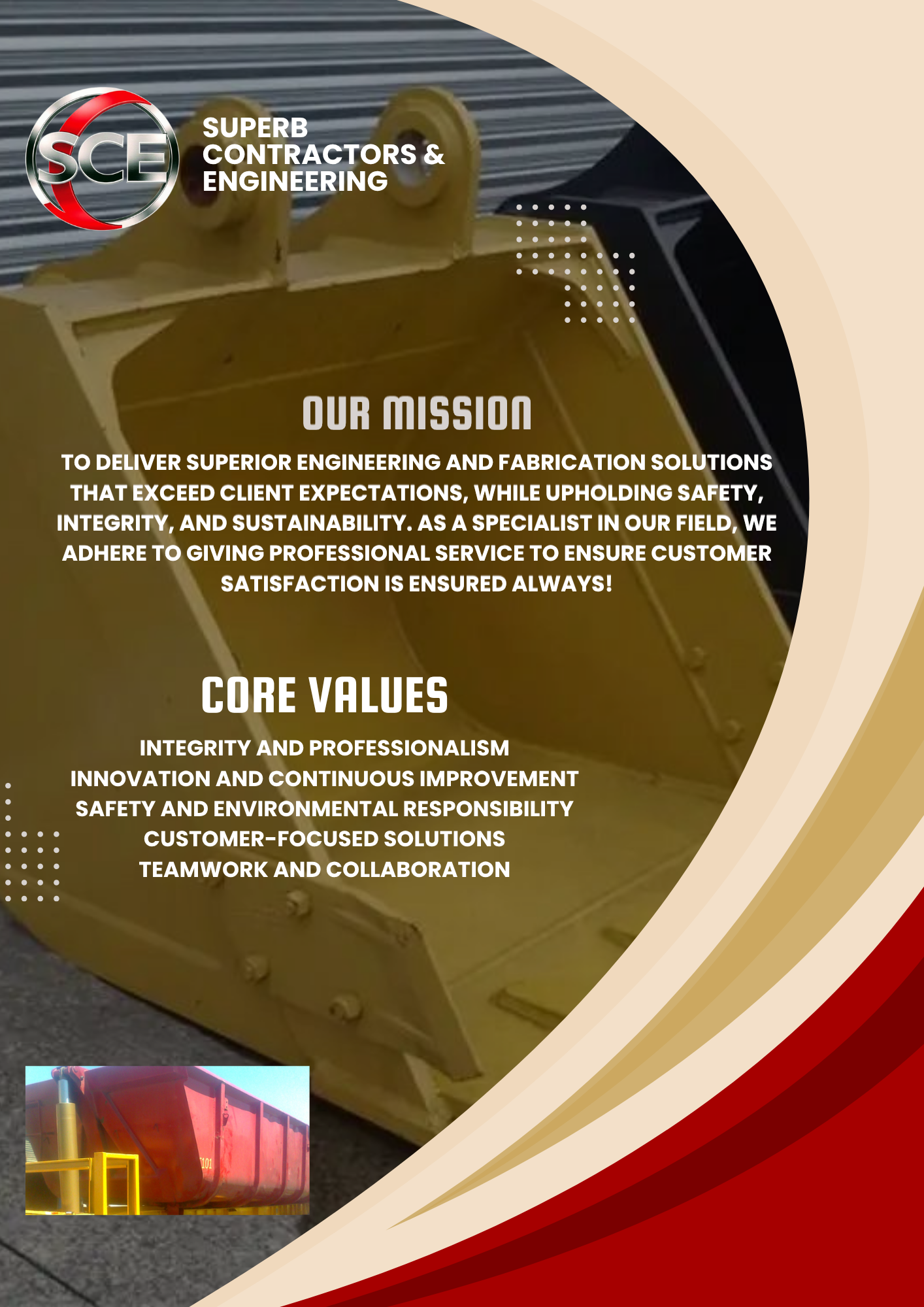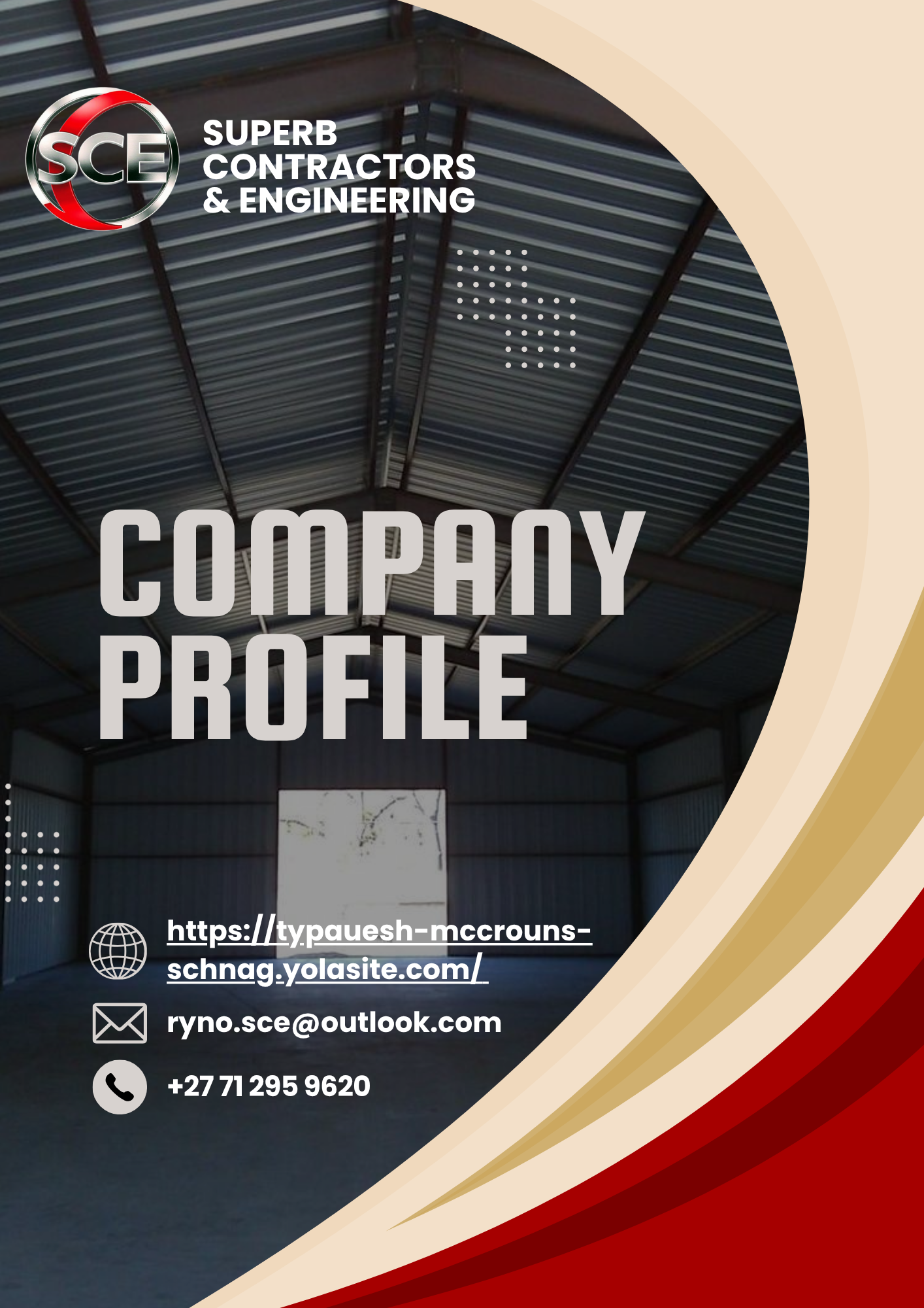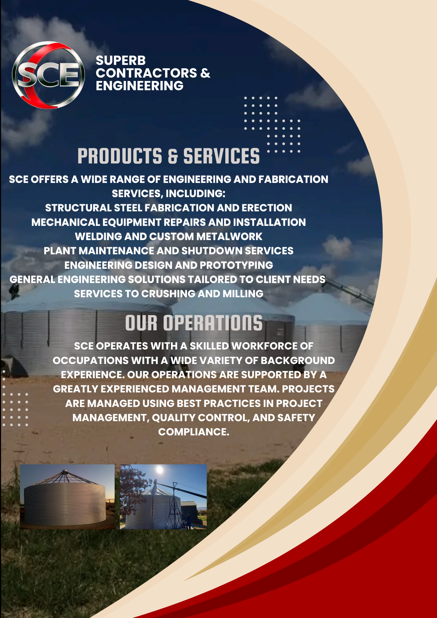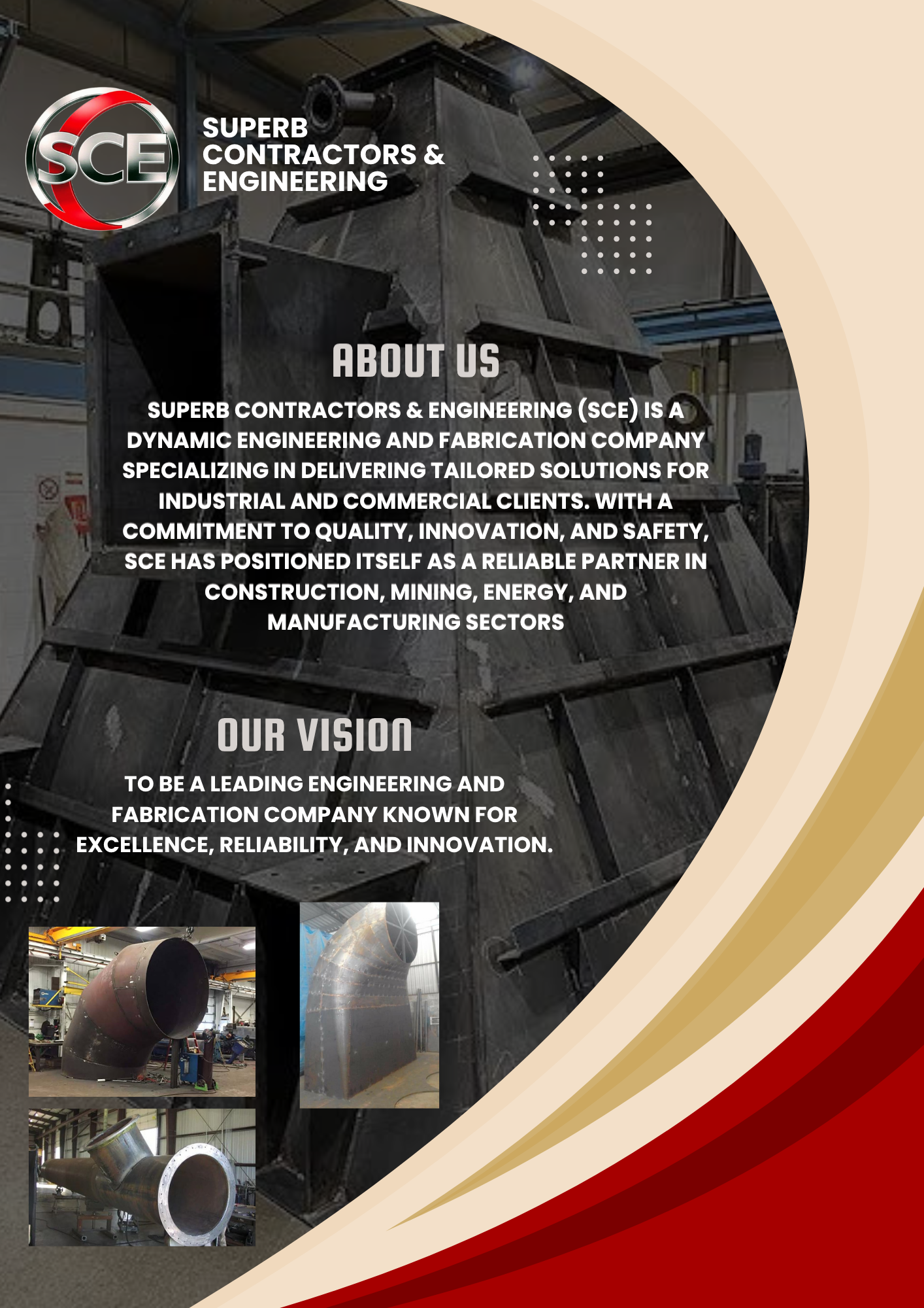 Superb Contractors & Engineering (SCE) is a dynamic company specializing in engineering and fabrication solutions for mining, construction, energy, agricultural, and manufacturing sectors as well as home/office improvements. With a commitment to excellence and precision, SCE stands out in delivering bespoke solutions tailored to meet the unique needs of each client. Located conveniently in South Africa, SCE combines craftsmanship with cutting-edge technology to deliver exceptional results. Our services include general engineering, fabrication, mechanical services, and steel works, catering to a wide range of industries. Contact us at +27 71 295 9620view more or ryno.sce@outlook.comview email... for innovative solutions from Monday to Saturday during our working hours.