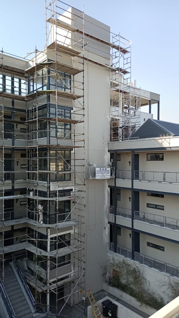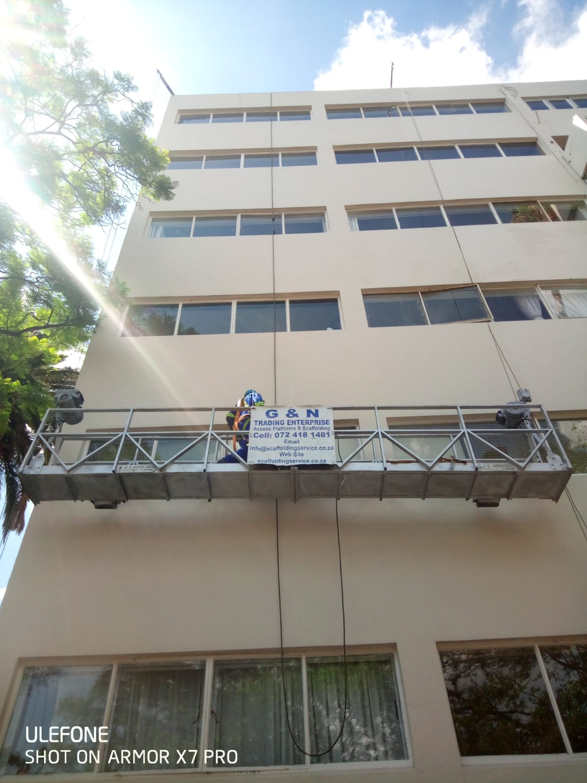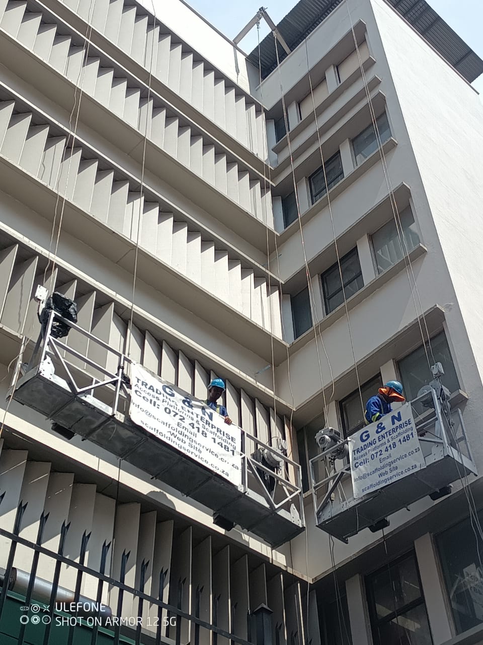Scaffolding services: Supply and erect K/stage scaffolding, Aluminium scaffolding, Temporary suspended platform, Track-system, Bosun chair, 2Man work cage, Material hoist and Youngman platform
