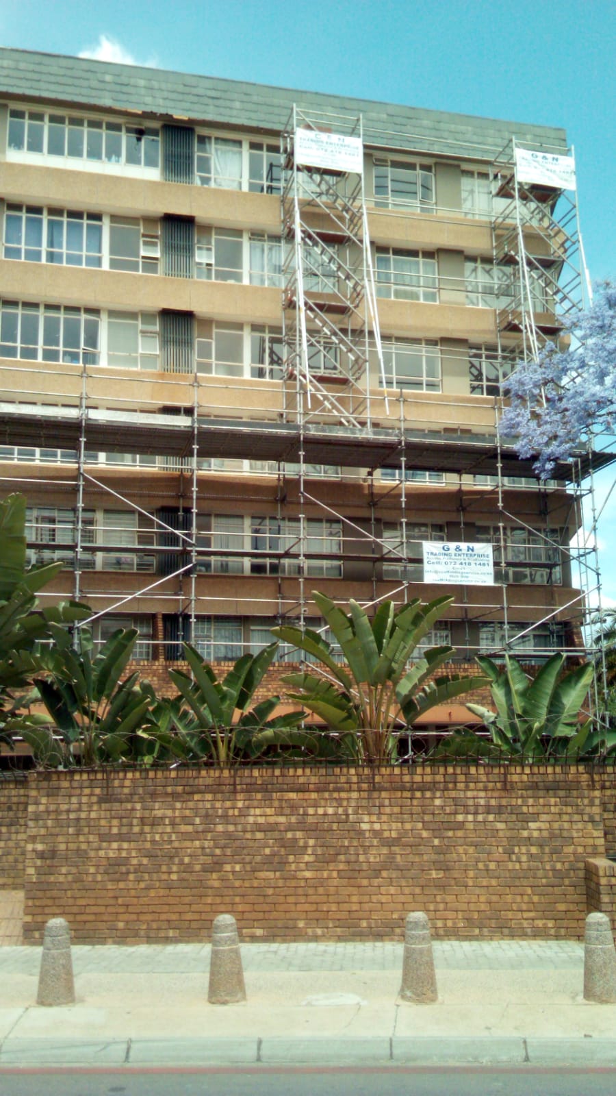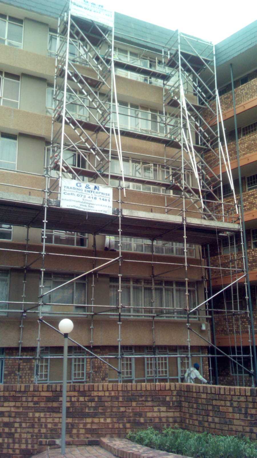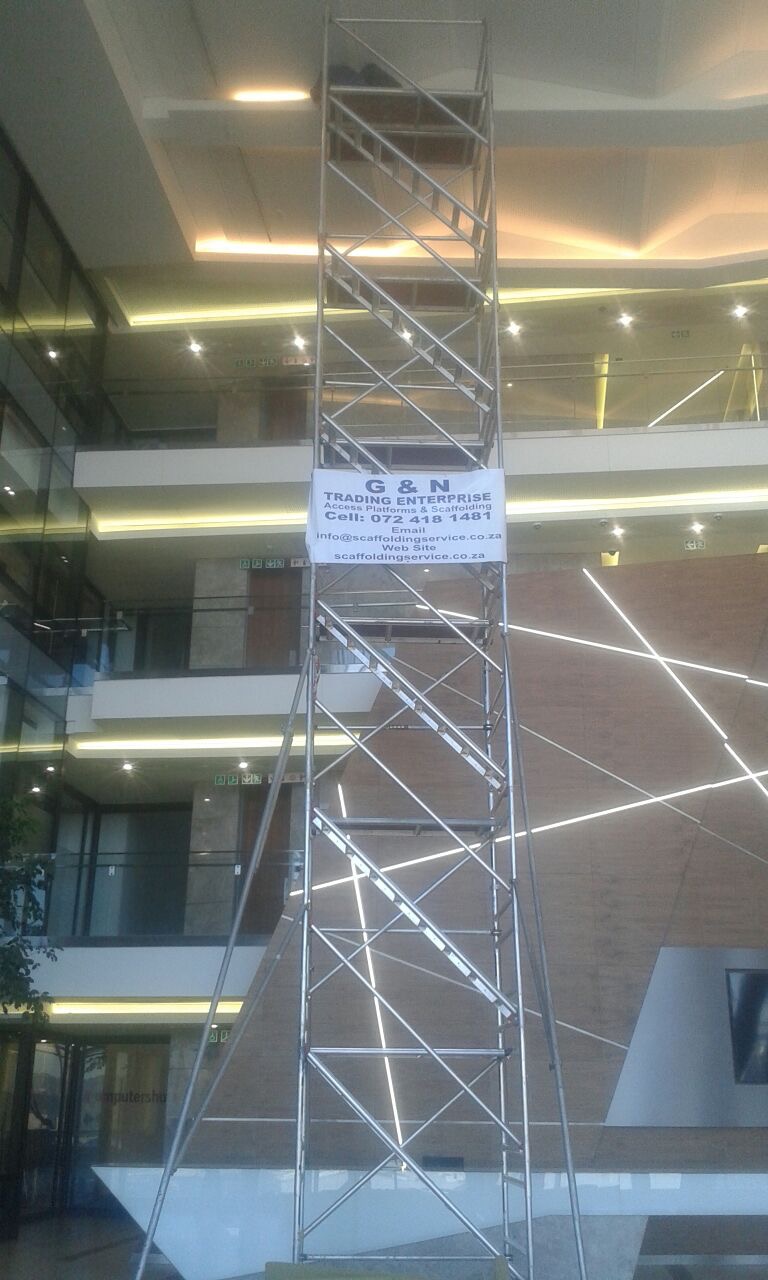 Scaffolding services: Supply and erect K/stage scaffolding, Aluminium scaffolding, Temporary suspended platform, Track-system, Bosun chair, 2Man work cage, Material hoist and Youngman platform