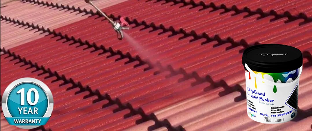 DripGuard Liquid Rubber is a 3 in 1 rubberised waterproofing system to Paint, Seal and Waterproof any type of roof. No more water leaks and it is suitable for painting interior and exterior walls, Floors and Pavements etc. Once painted it dries to a rubber coating that is waterproof.