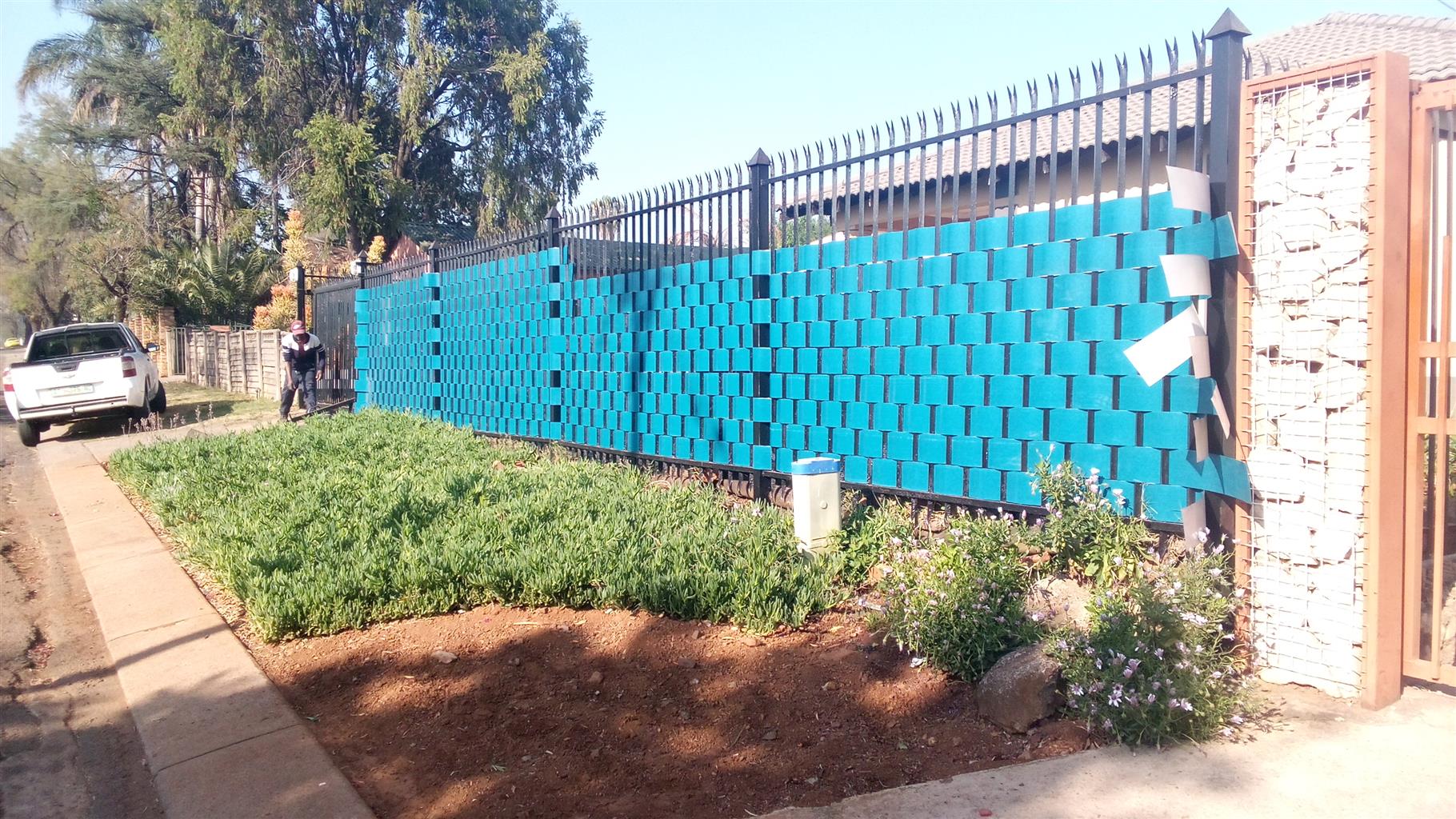 Palisade Fence Weaving is the Pioneers in the fence weaving business. We have upgraded our material from the normal galvanized steel to a much more durable and flexible fence weaving material. The new Steel Weave Material is a 0.32 Aluzink plate with it's first paint coating already applied - making it more durable and longer lasting than normal galvanized plate. This new material is also especially user friendly for people who prefer our Fence Weave Options. We offer custom, on-site palisade weaving options for businesses and residential properties, with finishes available in a variety of colors. Just give us a call and we can discuss the best options to meet your needs. g4solutions.co.za