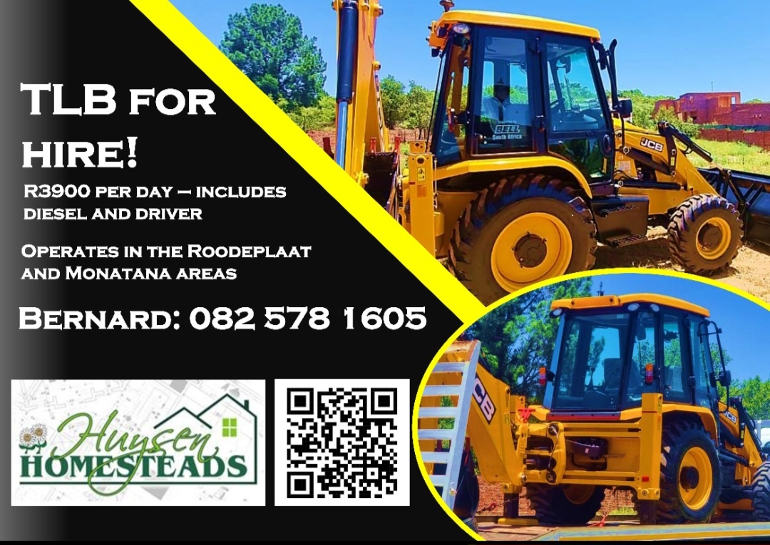 TLB for hire R3900.00 per dayIncludes Diesel and DriverAlso have Skidsteer, Truck, TencherBernard: 082 578 1605view more