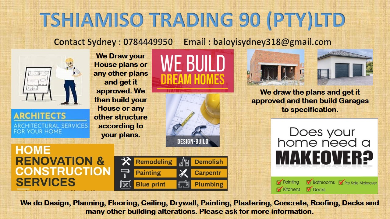 We do Design, Planning, Flooring, Ceiling, Drywall, Painting, Plastering, Concrete, Roofing, Plumbing, Decks and many other building alterations. Please ask for more information.