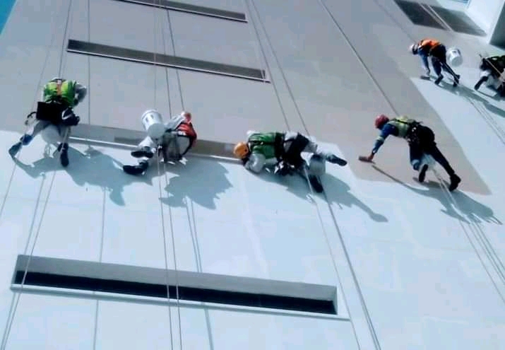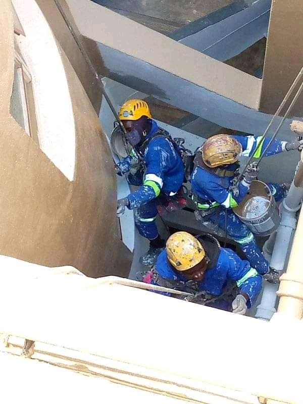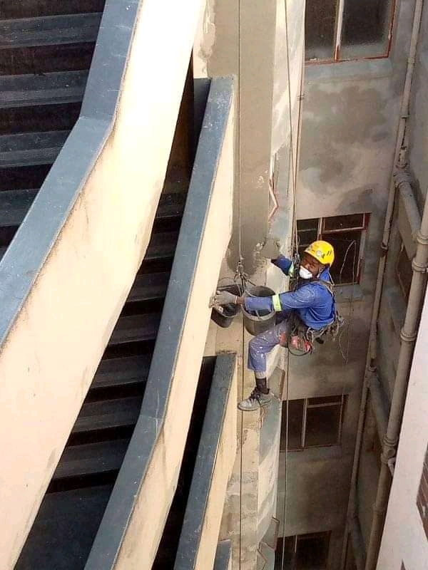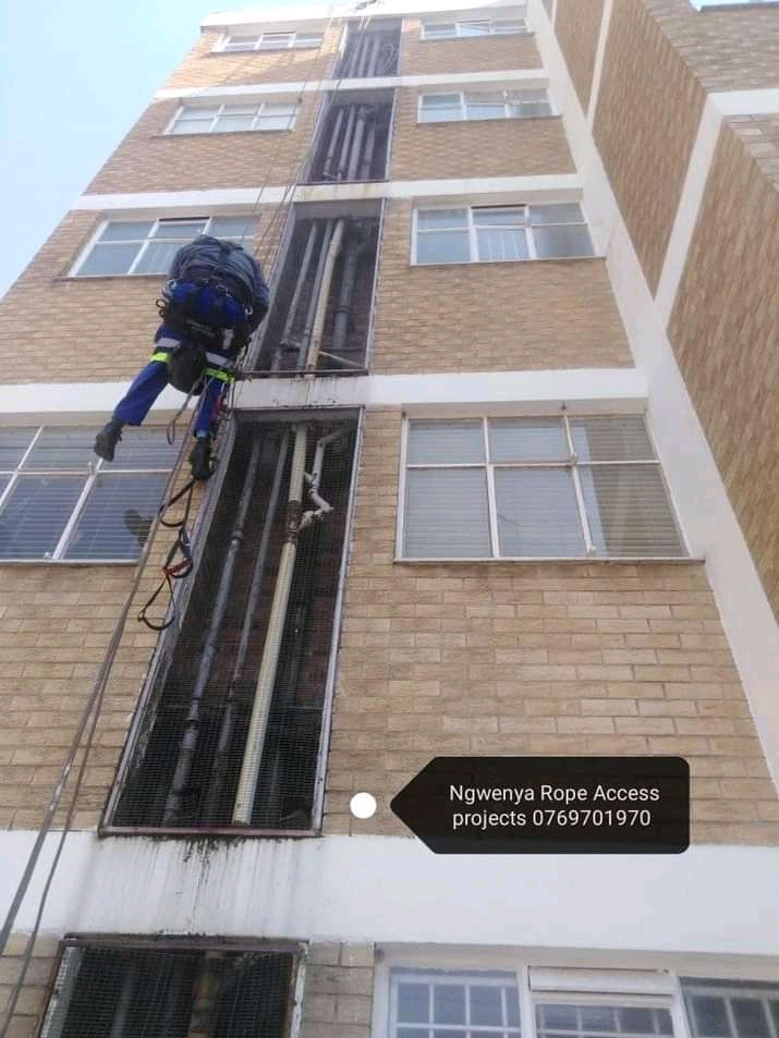 Ngwenya rope access projects we do waterproofing, painting, glazing, signage installation using rope