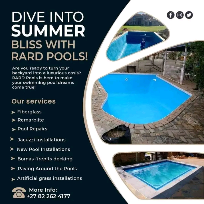 Swimming pool installation from scratch, pool repairs Fibre reclining remarblite pump repairs