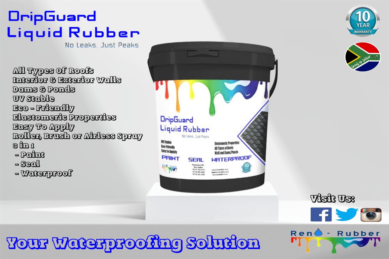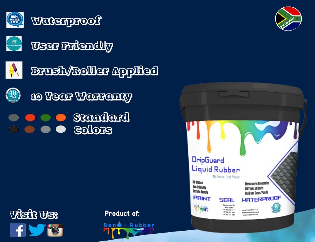 Need to Waterproof a Roof or you want the best protection for your Walls. DripGuard Liquid Rubber is a 3 in 1 Solution. Paint, Seal and Waterproof all at the same time. All types of roofs IBR, tile, concrete, corrugated, slate. Seal it all