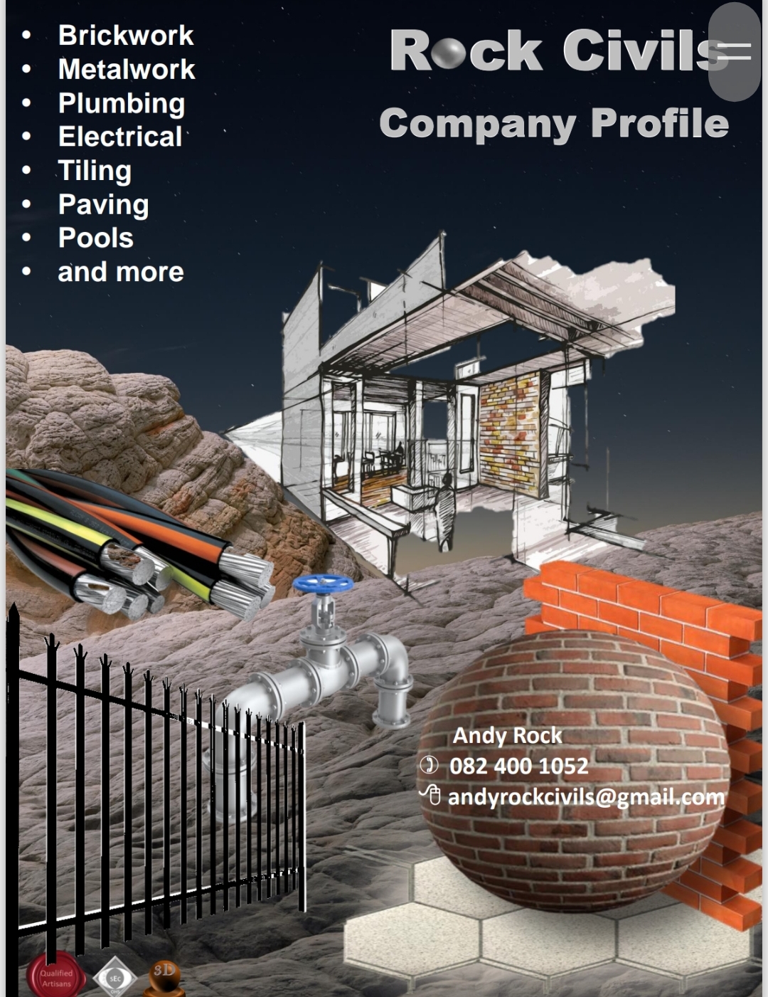Building Construction and General Building Maintenance ,Roofing ,Fencing , Frail Care , Tiling , Electrical ,Painting , Paving , Plumbing , Extensions , Decking , Thatched Roofs , Roof sealing , Ceiling repair / replacement , Pools ,Bomas and anything related to the building industry .