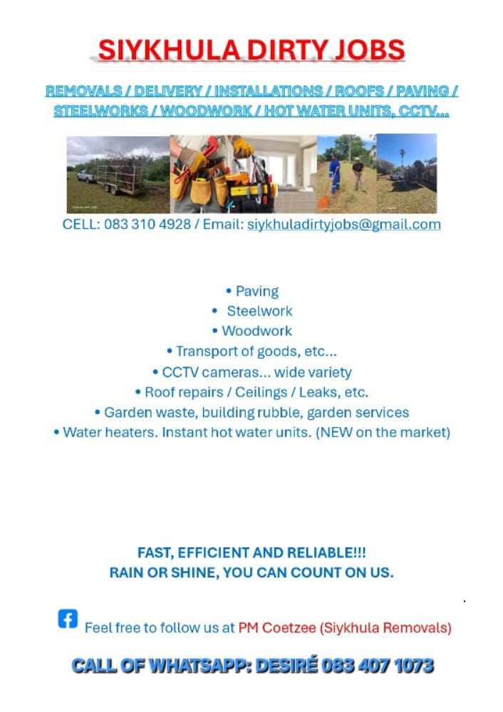 Feel free to call: 083 310 4928view more or 0834071073view more Klerksdorp, Hartbeesfontein, Stilfontein, Orkney, Potchefstroom