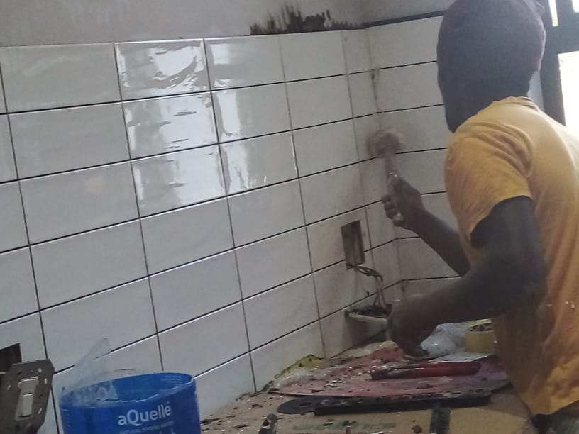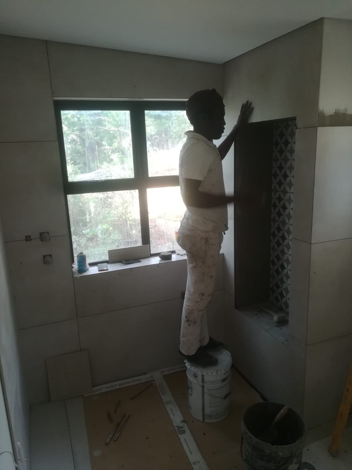 I work with all types of tiles- ceramic; porcelain; marble; mosaic as well as cladding (natural stone).