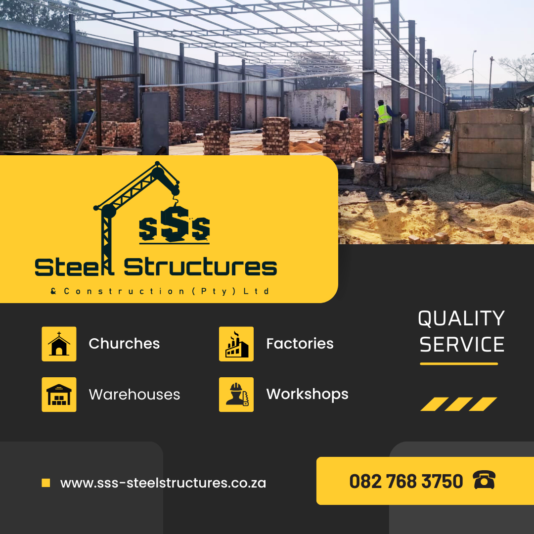 We specialise in the manufacture and installation of high-quality steel structures at affordable prices for Churches, Hangars, Warehouses, Factories, livestock enclosures, pack-houses, barns, and work/storage sheds. Detailed Plan Drawings and Engineers certification with all structures.