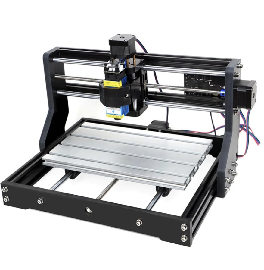 The CNC 3018 Pro is a desktop CNC router that can be used for engraving and cutting small projects. It comes with a 5.5W laser module and a 775 10000rpm ER11 spindle. The machine has a frame size of 420mm x 355mm x 280mm, and can cut up to 300mm x 180mm x 45mm.