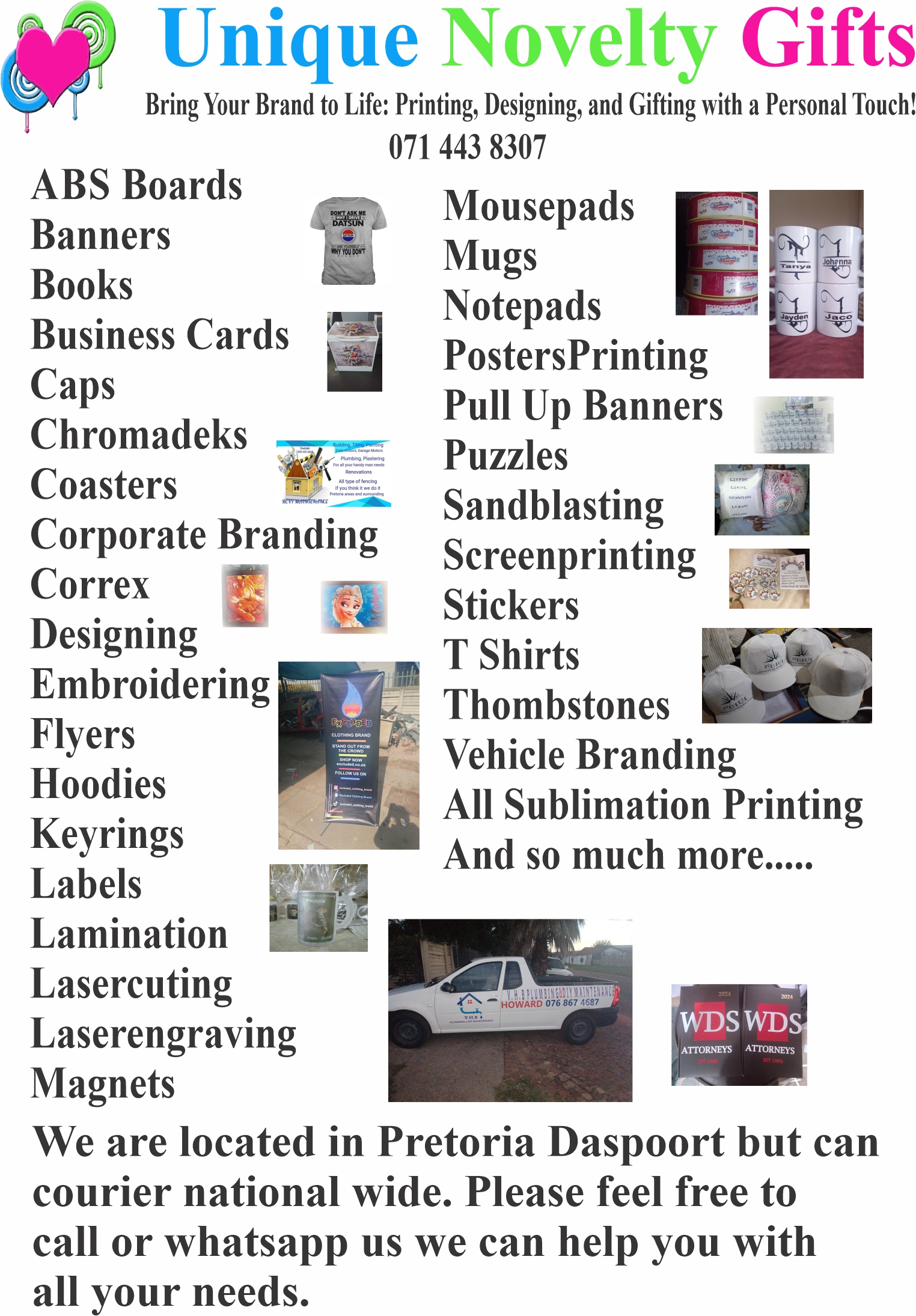 Printing service . More details:Intention - Contact MeRegion - GautengCity - AkasiaContact Veronika for more information.