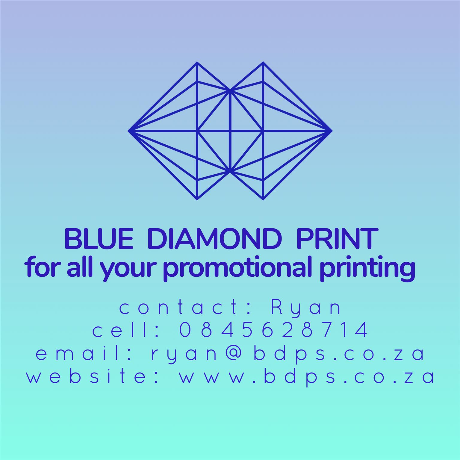 Based in Bokaburg, we are a small company called Blue Diamond Print Not only do we offer top quality t-shirts. We provide one of the largest selection of printing options. Ranging from your basic plastisol to puff and glitter prints etc. We also print full colour images in CMYK for photo quality prints.