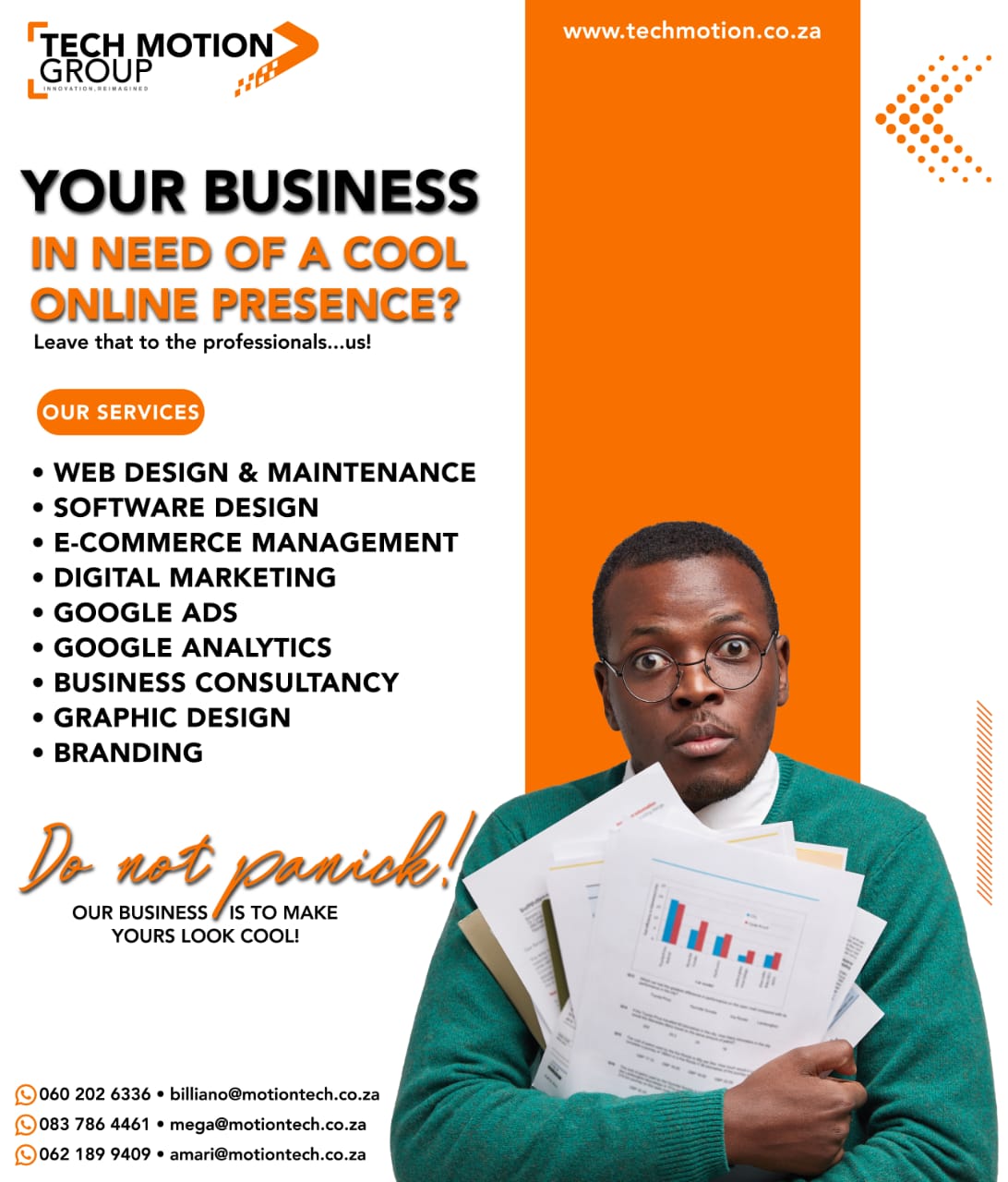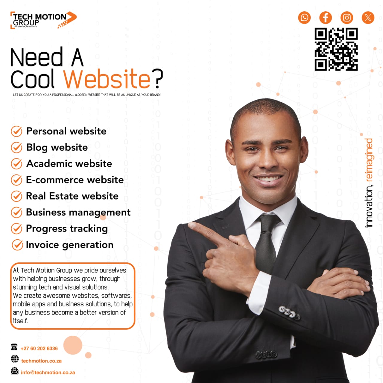 This is Kgosi from Tech Motion Group. I’ve been following your business journey and truly believe we can help you scale to the next level with a powerful, affordable business package designed to boost your online presence, automate operations, and increase sales.