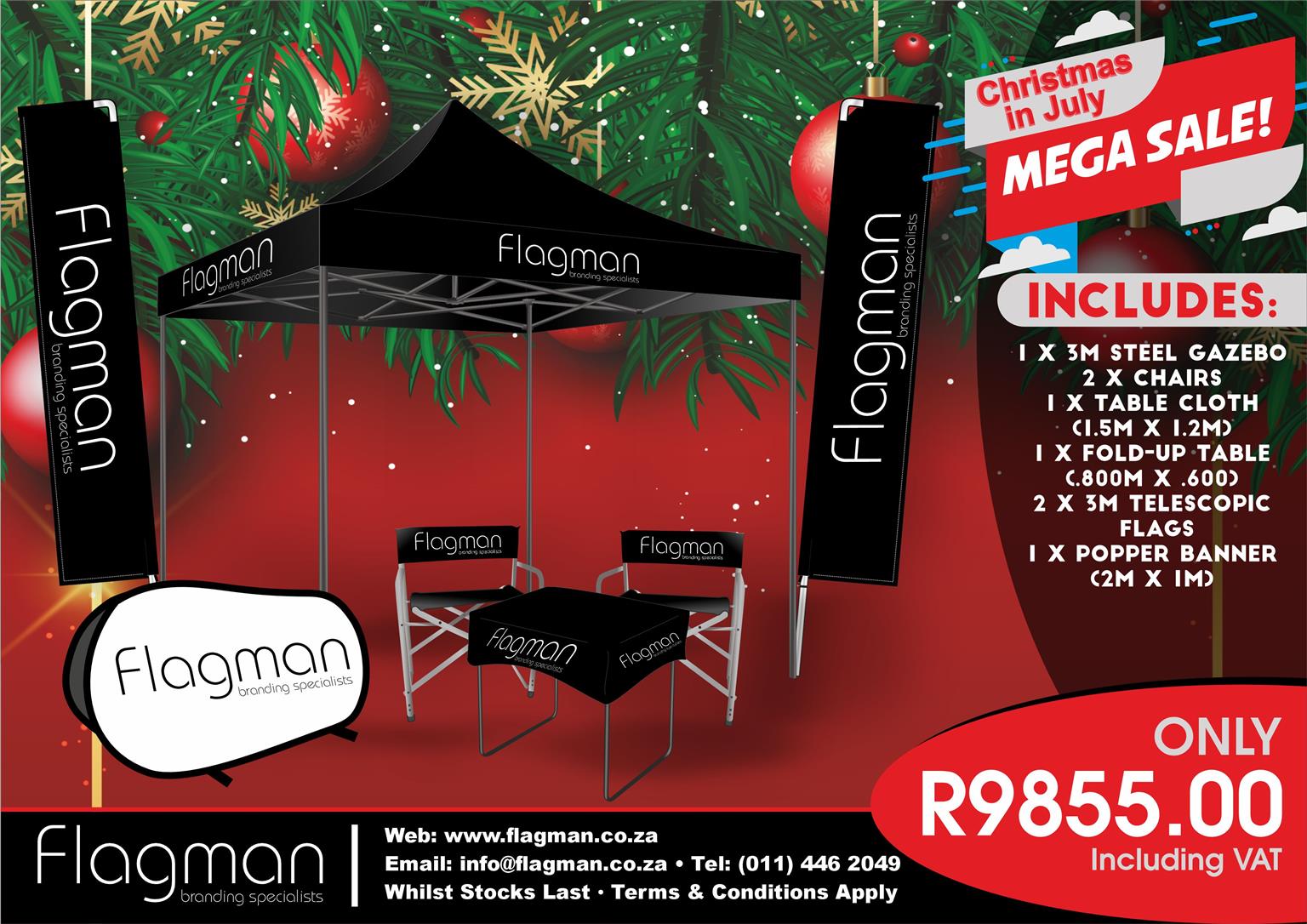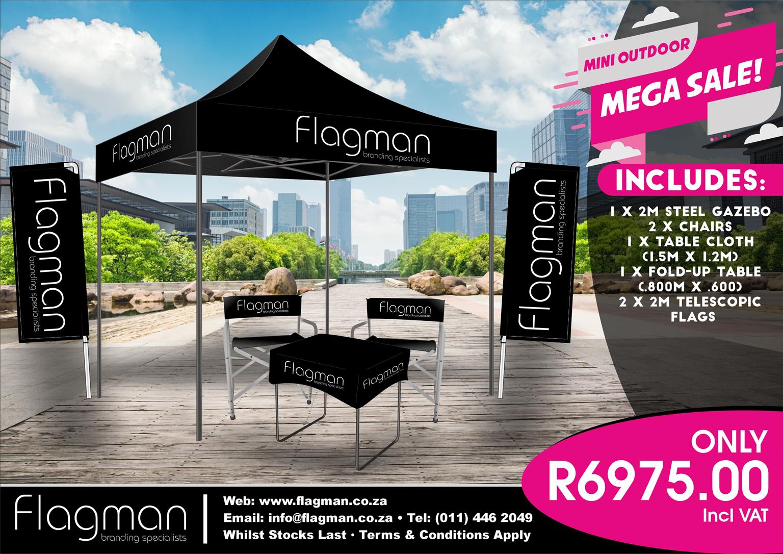 We specialise in branded promotional products. We manufacture branded gazebos, banners, flags, banner flags, gazebo walls, banner walls, branded chairs, branded table cloths and promotional booths. Our products can be used indoors and outdoors and is suitable for permanent use for eye catching signage or you can use our products at promotions like golf days and expos.