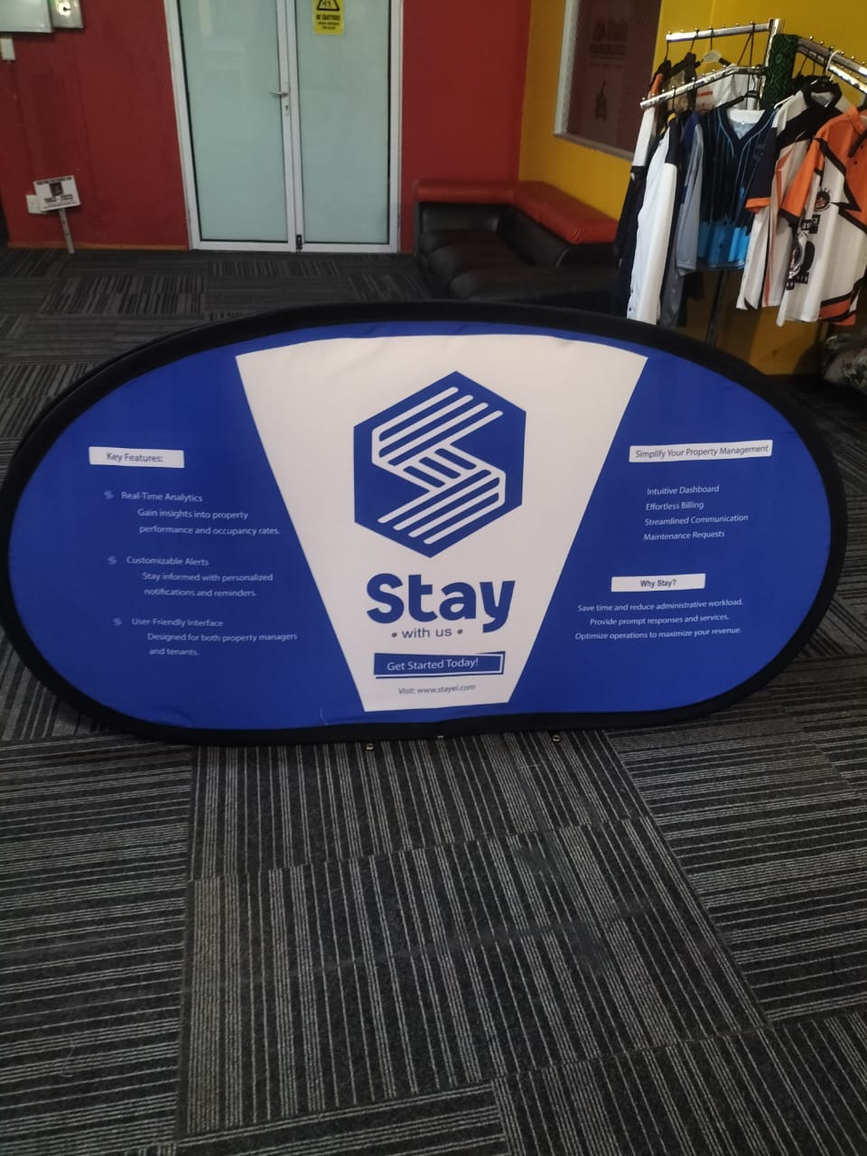 Elevate your branding with our high-quality pop-up banners, crafted from 100% polyester and 190gsm fabric, ensuring durability and style.