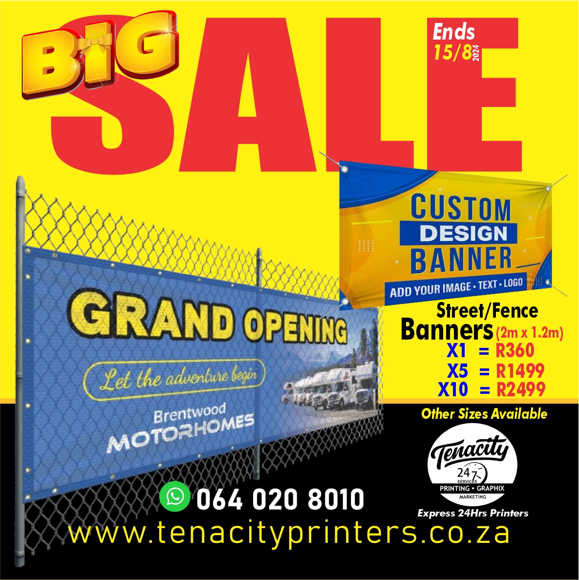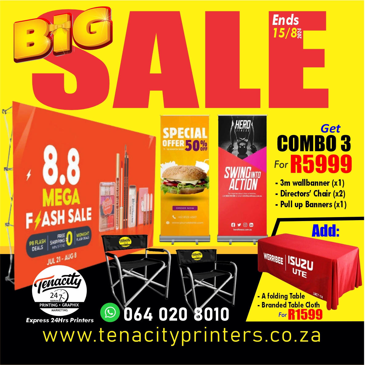 Get a 3m custom printed wall banner NOW AT ONLY R3699. Other indoor and outdoor displays available to complete your presentation/display. ORDER TODAY