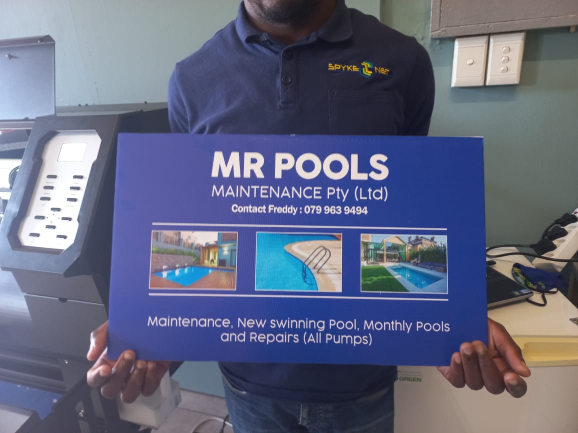 Sizes are 600mm x 400mm 12 pack with full color print single sided R35 each ex vat 24 pack with full color print single sided R32 each ex vat 50 pack with full color print single sided