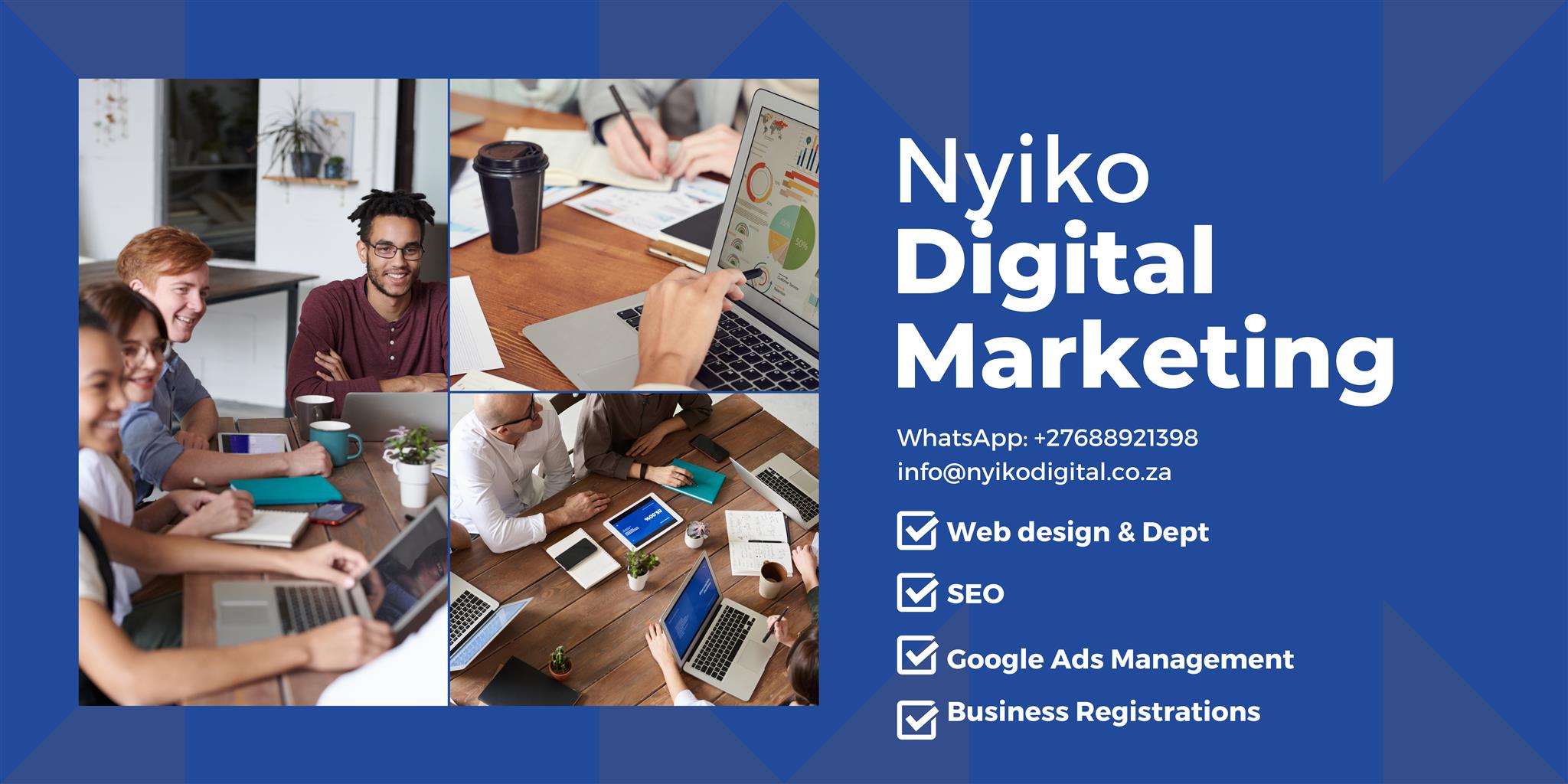 Nyiko Digital is a results-driven digital marketing agency dedicated to empowering small and medium businesses in South Africa. We specialize in web design, web development, SEO, social media management, Google Ads, and company registration services, helping our clients establish a strong online presence and achieve their business goals.