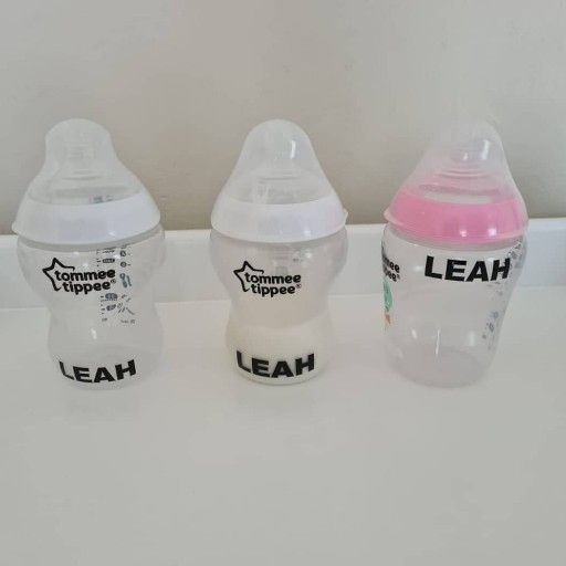 30 x Name decals 80mmx15mm to mark all baby bottles, cups, lunch boxes, space cases ect. Made with cast vinyl same used on branding of planes. In black or red cast vinyl