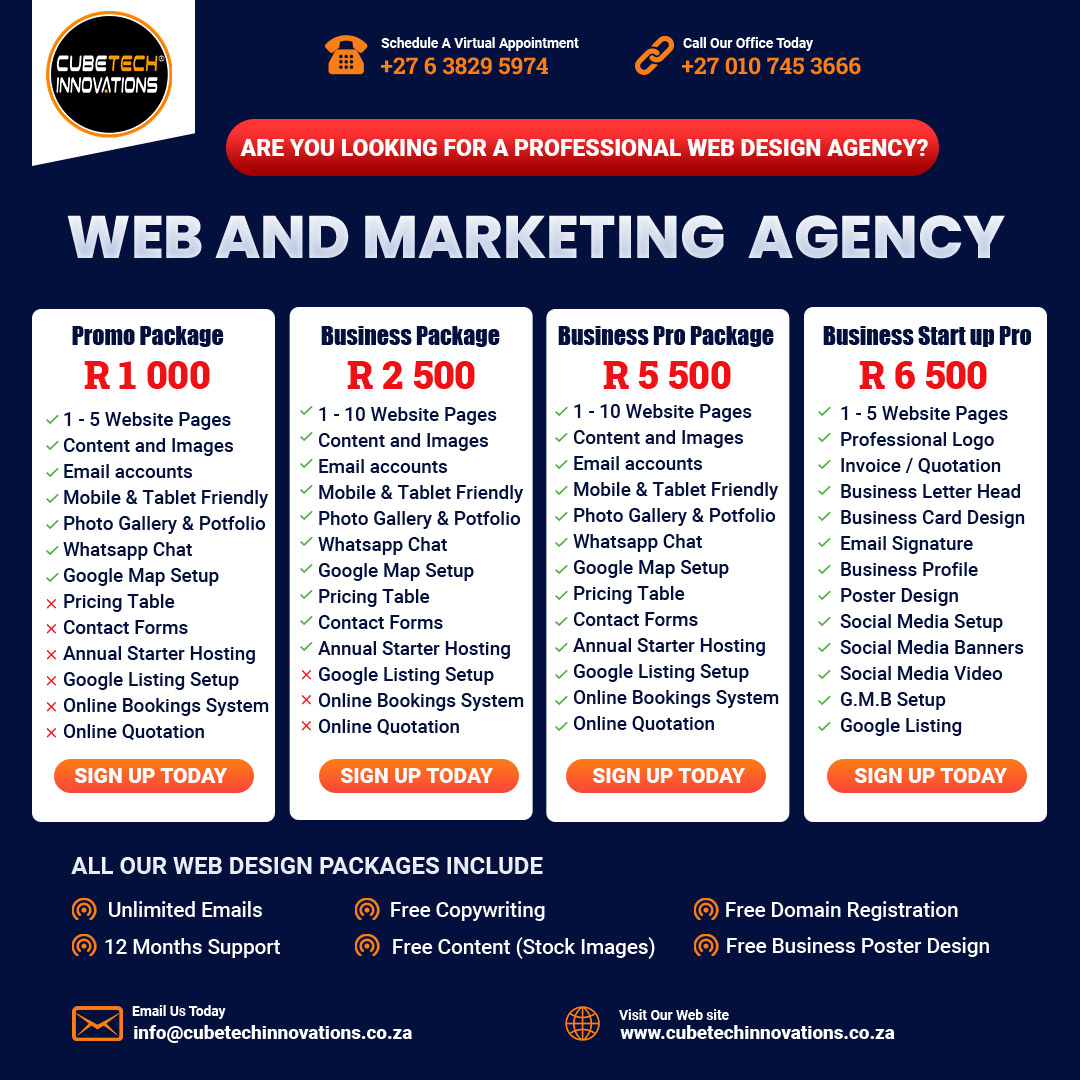 We are a forward-thinking company that provides stunning web design solutions to businesses and individuals. Our team of designers and developers will ensure that your website is up to date with the latest technology, design trends and search engine optimization. for more visit our website https://cubetechinnovations.co.za/