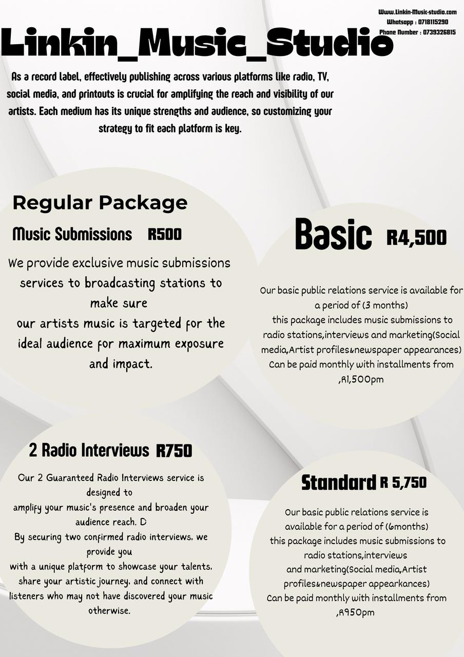 1. *Digital Distribution*: Distribute music to major streaming platforms, such as Spotify, Apple Music, and YouTube Music.
