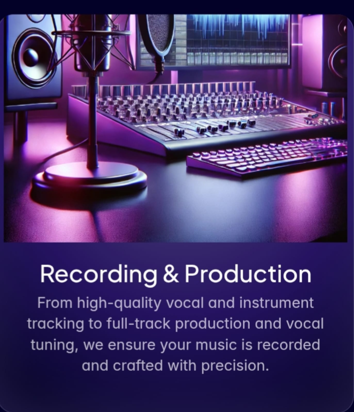 1. *Recording*: Offer recording services for artists, including tracking, mixing, and mastering.