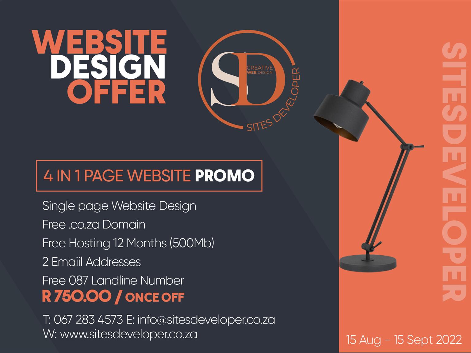 Get a website plus free hosting and a free. Co.za domain for 1 year only R750.00 https://wa.me/message/4QX6QVCJYOF4G1 Contact: 0672834573view more or email info@sitesdeveloper.co.zaview email.... Examples : www.emour.co.za, www.ssmartprojects.co.za, www.micory.com, www.mmadinare.co.za, www.mnconstruct.co.za, www.djspenk.co.za, www.sebastianschuler.co.za, www.ssmartprojects.co.za, www.bnaudio.co.za, www.ecosystec.co.za, www.raponsie.co.za