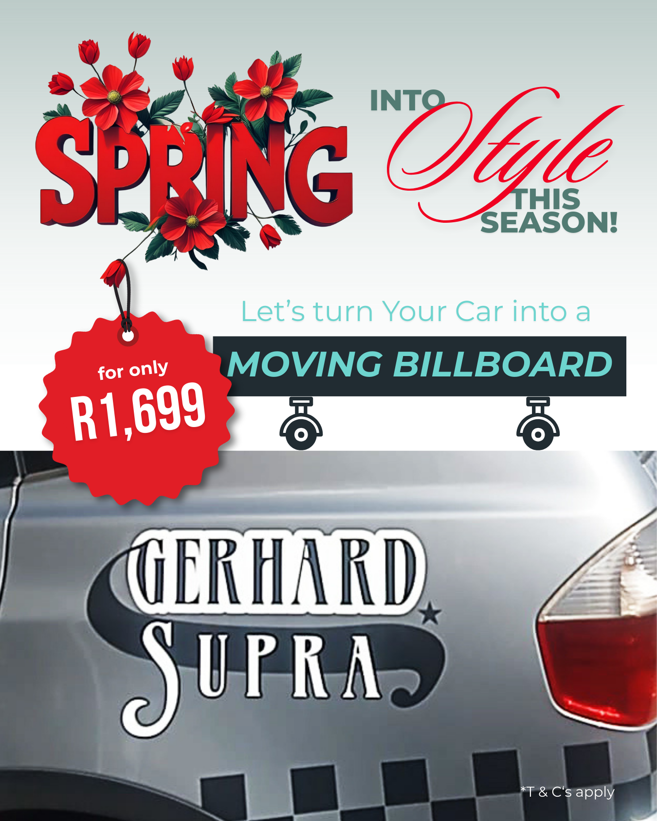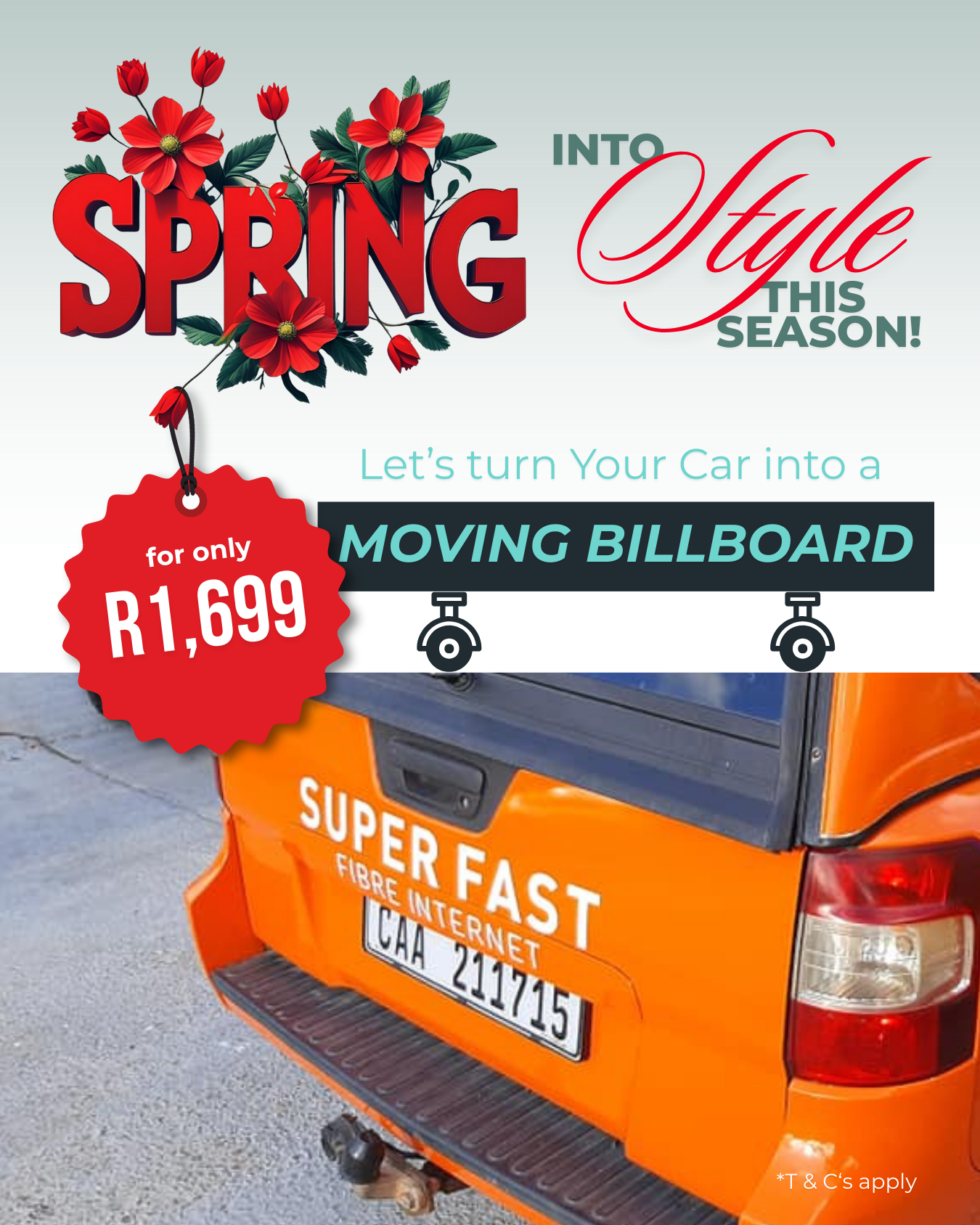 Add a 2,4m x 1,2m ACM sign board for only R2751!